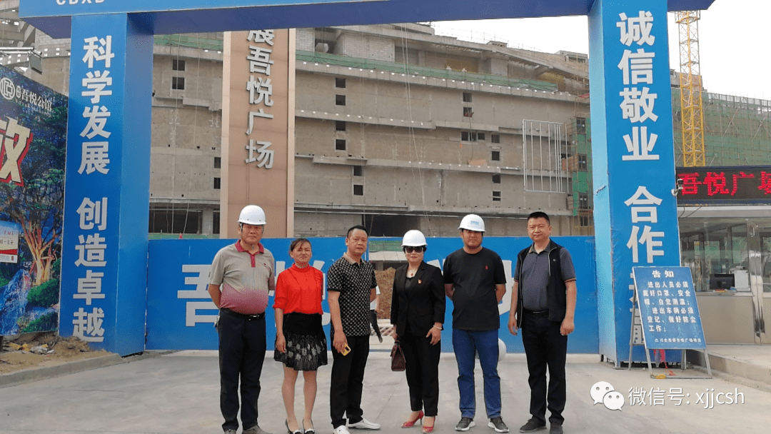 五月走访会员企业简讯 初夏的首府乌鲁木齐市,车水马龙、生机勃勃,在远方雪山映衬下格外美丽。5月25日下午,新疆建筑材料行业商会5月份轮值会长、乌鲁木齐市格林吉顺有限公司总经理卢素珍,轮值会长、新疆昆仑五贸易有限公司总经理周章生与商会常务副会长兼会员发展部长、乌鲁木齐大洋鸿基石业养护有限责任公司总经理刘洋,商会副会长、立邦刷新装饰工程有限公司总经理徐仁淮一行深入会员企业一线走访,学习宣传自治区党委十届三次全会精神,共商企业走出困境、合作发展之策。 下午5时30分许,商会领导首先来到位于乌鲁木齐市水磨沟区红光山路“会展吾悦广场”施工现场走访。