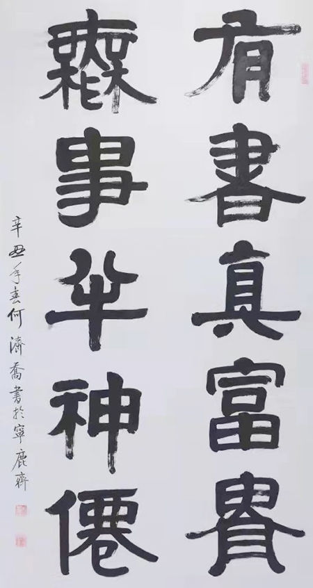![]() 何济乔,浙江湖州人,1965年出生,国家高级美术师,国家一级书法师,现为书法家协会会员、中国楹联学会书法艺术研究会副主席、中国互联网联盟全国外联部主任、中国书画家联谊会新文艺工委会理事、收藏天下全国数字电视频道学术指导与特邀艺术家、黄山百花书画院名誉院长、浙江济国文化艺术有限公司董事长,号宁鹿斋主,其书画作品,瘦劲其形、婉润内蕴、清新俊逸、朴秀多姿。 何济乔自小喜爱书画文学,1983年在天津求学时经浙江籍教授杜国生老师推荐拜在启功先生门下,得启功先生把手亲授,数十年苦练书画,专学启师,遍学王羲之、米芾、黄庭坚、赵孟等名家,融会贯通,并始终遵循启功老师的教诲,淡泊明志,独自畅游于书画艺海,快然自足。