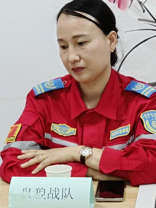 张钏钏在会上汇报了枭狼应急救援队苏州枭狼志愿者协会 筹建于2021年,发起人成员之前就职在中华志愿者协会吴江服务队,有应急心肺复苏,山地救援,水上救援,赛事保障,急救培训的相关经验,与苏州湾跑团战略协作,有志愿者166人。是一支有组织、有纪律、有责任、有担当的民间应急救援组织。分别来自全市各行各业,是一支由退伍军人、教师、医生、企业等爱心人士组成的公益救援团队。主要性质是纯公益救援和参加举办各种公益活动,发扬志愿服务和无私奉献精神,是辅助政府抢险救灾的一支社会救援力量。