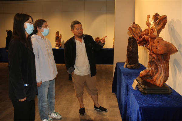 《飞天》《紫气东来》《回眸》《旗开得胜》等近百件根雕作品得到了游客们的高度评价,其中不乏曾获得过国家金奖、银奖的根雕作品。作品或灵动秀美,或遒劲厚重,或端庄内敛,或大气磅礴,于抽象中透着凝重,拙朴中横溢野趣,缺憾中隐含优雅,朦胧中散发着灵性之美。根雕艺术展让前来观展的市民和艺术爱好者感受到了大自然的鬼斧神工和根雕文化的独特魅力,既是一场视觉盛宴,也是一次文化洗礼。