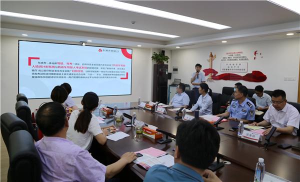 考察组一行首先来到总行,与东港农商银行负责同志座谈交流“驾培考一体化便民服务平台”相关工作推进情况。座谈会上,大家首先观看了东港农商银行宣传片,党委书记、董事长李英博简要介绍了全行整体工作开展情况,相关工作人员对“驾培考一体化便民服务平台”工作进行介绍,双方就数据获取、系统整合、操作流程等方面进行了互动交流。