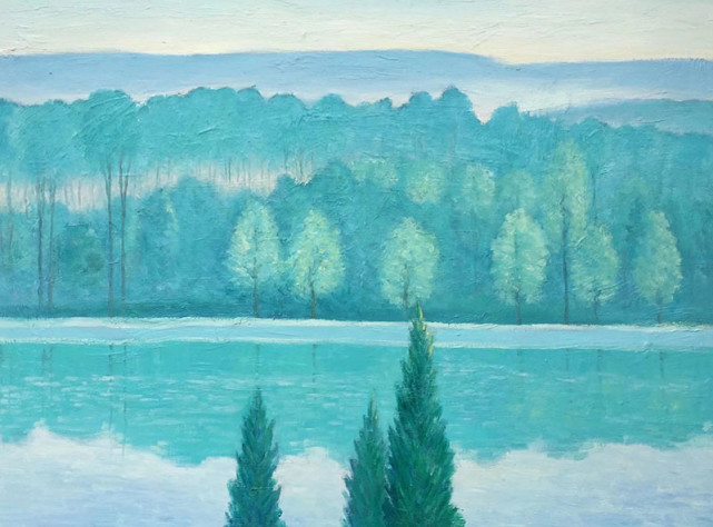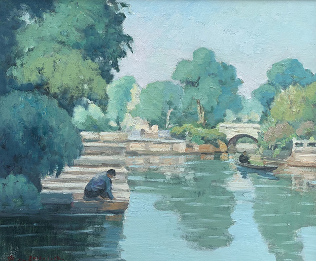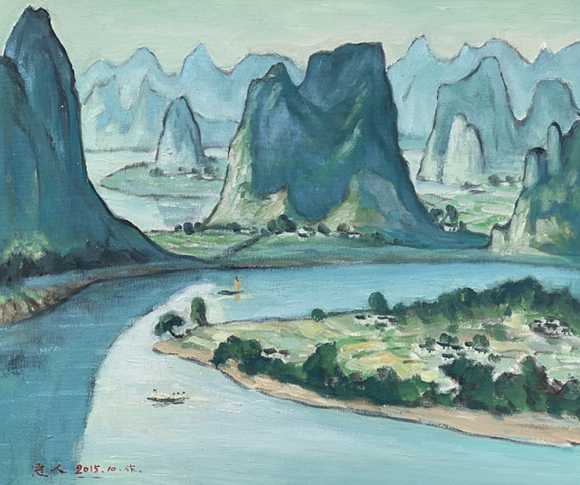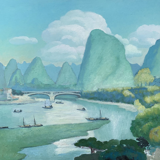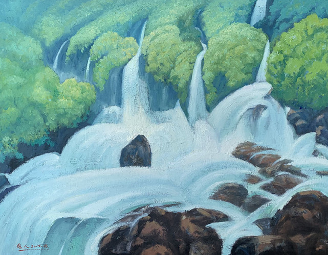 苏冠人作品 长期以来,苏冠人融汇中西,不断探索富有鲜明民族神韵的油画特色,使作品中带有大自然的那种灵气,即一种与自然相融 “天人合一”的境界。以自己对色彩独特的感悟,以心写真,用绝美的艺术语言演绎心中之美。通过画面可以看出,苏冠人用绿色来表达自己的观念和思想,那冷暖交融的绿意描绘出自然中的生态风情,线条的细腻和粗犷表现了静谧又充满张力。画面中布局严谨舒适,光与影的交错构成了强烈的节奏感和深远的空间关系,写意的笔触和饱含清韵的色调从他的画笔中奔涌而出,在理性与情感的交融中隐现出人文关怀。苏冠人用自己独到的眼光去审视山水之情,用特殊的手法再现宁静美景。在他的作品中,观者可以感受到阳光和空气的美妙,可以品读到水汽的弥漫,在不同的光影之间,表现的是摄人心魄的沉静,在光线和色调之间呈现出通透感的情境,让人不经意间就能走进画面,感受诗意般唯美的意境。在自然柔和的绿意与光影中,捕捉到动人心弦的光景,用精微生动的语言,经过高度艺术加工,达到情景交融,借景抒情,从而表现出艺术境界上的升华。