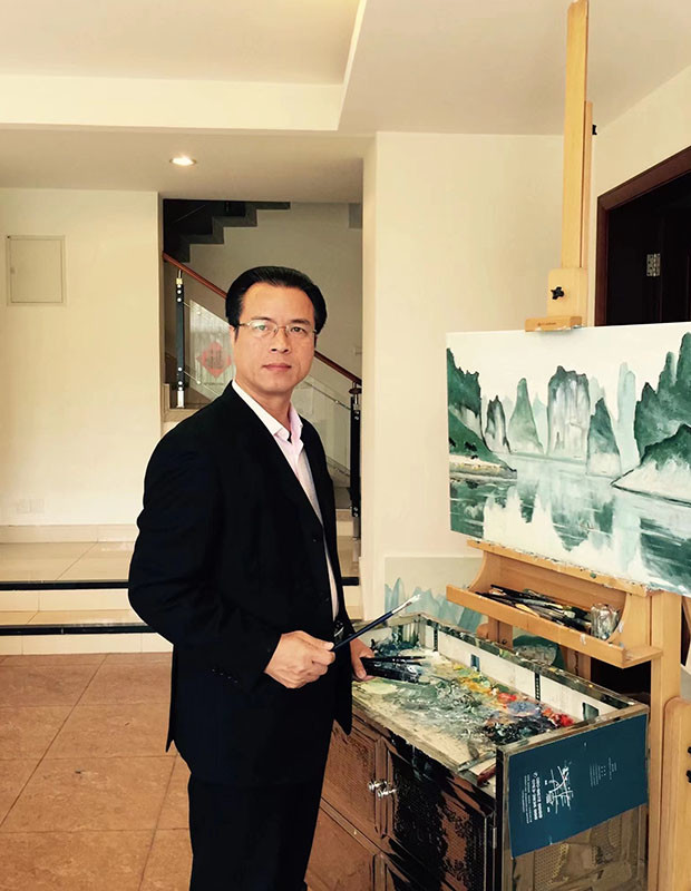 苏冠人作品 苏冠人将西方油画色彩语言与国画写意性相结合,传达自然天成的美学意象,是一种新的探索。在光色上培养了一种具有浪漫光感的特殊的手法,准确描画着、体验着、感受着画面的和谐与平静。这种表现手法是他长时间认认真真地仔细观察,感受不同的地域环境及风土人情,用自己的绘画语言来描述对自然的眷恋与深情。苏冠人在创作中注重光,气,水三大元素的运用,追求的是真实表现自然界景物在阳光下所形成的一种特质,从构图到立意,都寓情于景,显示了他对自然之美的心灵赞叹,创作出了源于自然而又高于自然的艺术作品。这样的作品既展示了韵致,又充满了现代审美情趣,沉厚浑朴而不失秀雅,层次分明而浑然一体,揭示了油画写意的主观构建和极富想象力的艺术层面。优秀的作品应有时代性,是鲜活生动的,要借助绘画语言表达自己的情感,写现实生活之感。苏冠人的作品充满个性、充满内涵、充满思想性和民族性,运用西方油画的理念加富有自主创新,体现时代精神的美学追求,使人充满向往、充满激情,呈现出雄浑雅致的艺术气象。在这里,我们汇集了他的艺术代表作和近年的新作,一起领略他别具一格的诗意韵律和清气扑面的艺术气象。 ![]() 苏冠人,1960年生,广西防城港市人,研究生学历。苏冠人国画、油画双栖,现为国家一级美术师、加拿大维多利亚皇家艺术学院客座教授,香港特别行政区文学艺术界联合会美术家协会(特聘)副主席、中国收藏家协会会员,中国中外名人文化研究会学术委员会会员、广西民族书画院高级书画师、广西防城港市美术家协会名誉主席。曾任中国边防武警部队电影放映员、参加过中越自卫反击战。历任广西防城港市电视台编辑、记者,防城港市建委办公室干部,防城港市城市建设工程公司总经理,防城港市建设房地产开发公司总经理等职。百多幅作品发表于国家级出版社出版的数十种专业艺术杂志、大型画集、电子图书、并展出于各种专业展览会和拍卖会上。