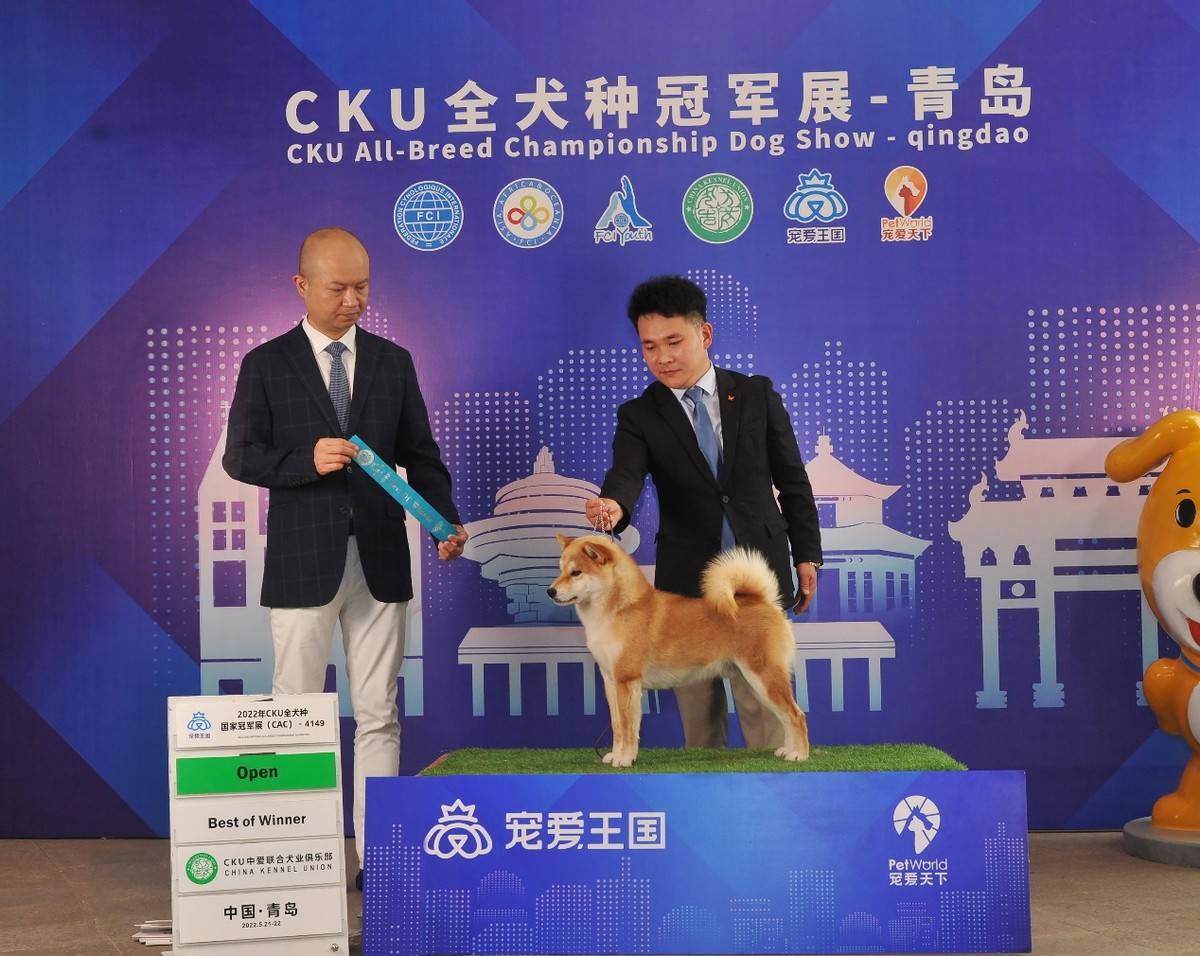 2022年5月24日,为期三天的CKU全犬种冠军展在青岛顺利落下帷幕!参与本次全犬种赛事的参赛犬有130多条。 其中来自狗狗王国犬舍的柴犬多吉在知名牵引师李晓晓的带领下顺利拿下中国登录冠军。取得了全犬种赛事拿下六场最佳公犬wd,收获6张cc卡(中国选美冠军资质),四场bow赏历。