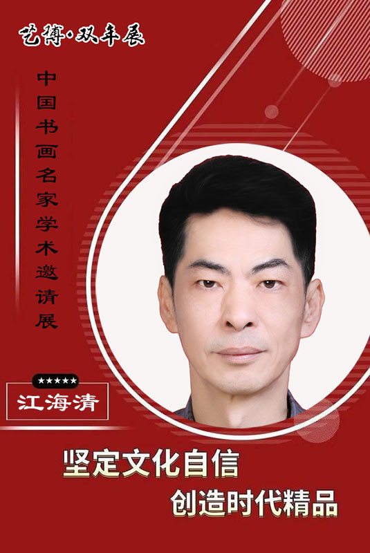江海清作品 江海清先生凭借对艺术的天赋和执著的追求,并且在书法中找到了自己的共性特征,形成简约静穆、古拙雄健的艺术风格。其线条行笔流畅, 轨迹清晰, 明朗,笔墨沉稳,结体取势独立连贯,极富表现字之意态,章法布局的平稳,气运贯通。点画线条的造型与视觉的构成形成自然情态,在作品中表现为丰富细致的用笔技巧、沉着畅快的行笔方式,营造出一个宽博遒丽的艺术格调和恬静闲适的自然书境。江海清先生的书法立足于传统审美的基础,是一种人格修养的表达,蕴含着特别的文化韵味。这种独特的书风是对传统精华的继承,既有古法、又有当代笔意,其鲜明的个性体现着他沉静的思考和文人情怀。通过欣赏其书作,窥其创作心态,意趣盎然,皆在不激不厉之中尽显淡然韵致,是其精神和心灵深处的真实写照。江海清先生的书法有一种气势美,追求一种气势磅礴的浩然之气,这种气势之美表现在章法上,也表现在结体上,即是风格之美,又是笔法之美;展现了神韵俱佳的美学意蕴。 ![]() 江海清,字银郎,微信名:银城叮当,祖籍福建泉州,出生于厦门同安,精古诗古文,工书法,书法毛笔硬笔兼具,且“食古而化,集众妍归我,自成一脉”,被人民网、新华在线、人民日报海外网、人民日报《人民美术》杂志、《人民代表报》、《书法报•书画天地》、《作家报》、CCTV今日视界等数十家国家级主流媒体和专业书画报誉为“当代江南才俊”、“诗书双馨”、堪称“压倒元白之才”。书法作品以清逸超群、自然妍美、飘逸洒脱、雅俗共赏而著称。 现为:中国诗歌学会、中华诗词学会会员,中国大众文化学会名人书画艺术发展委员会常务委员,中国书画家联谊会新文艺工委委员,中国中外名人文化研究会学术会员,孔子美术馆签约艺术家。