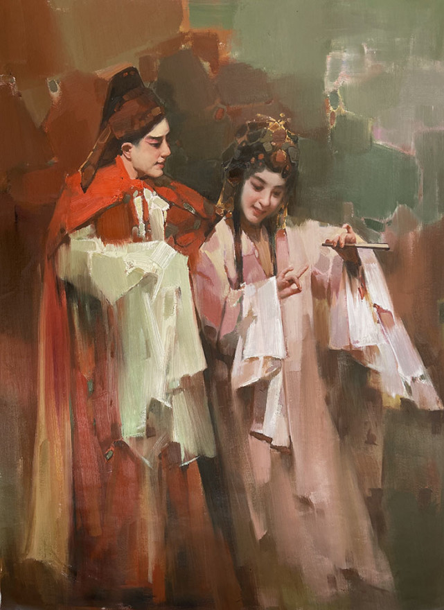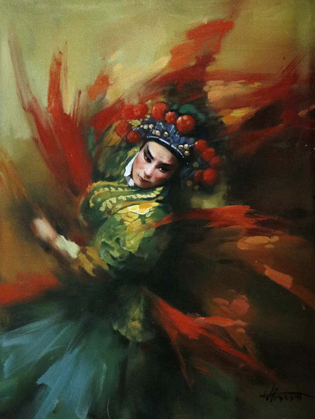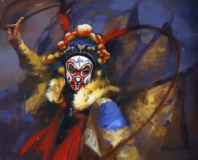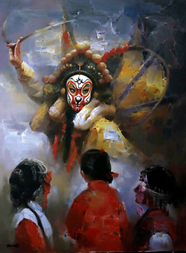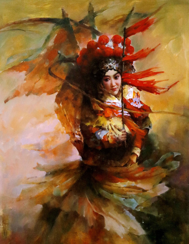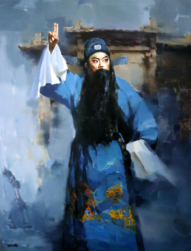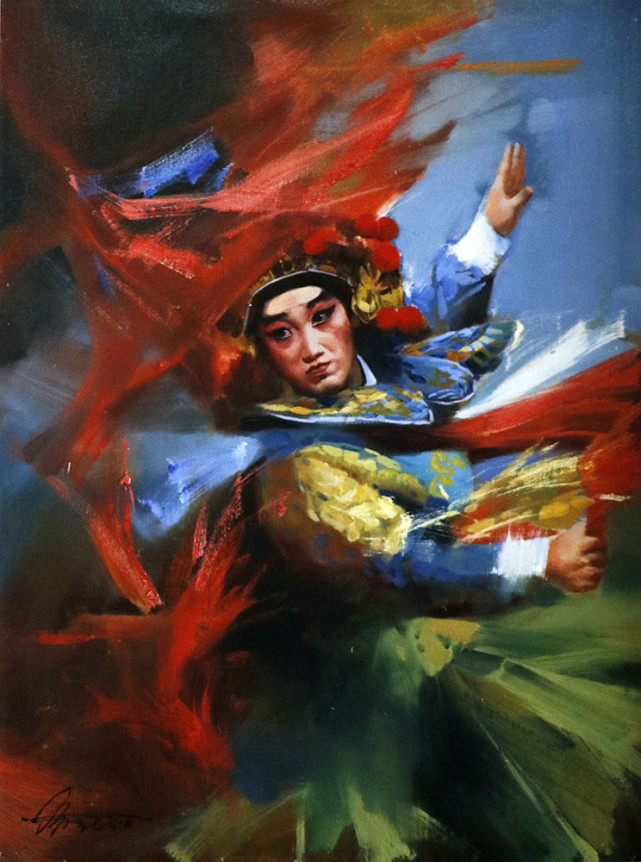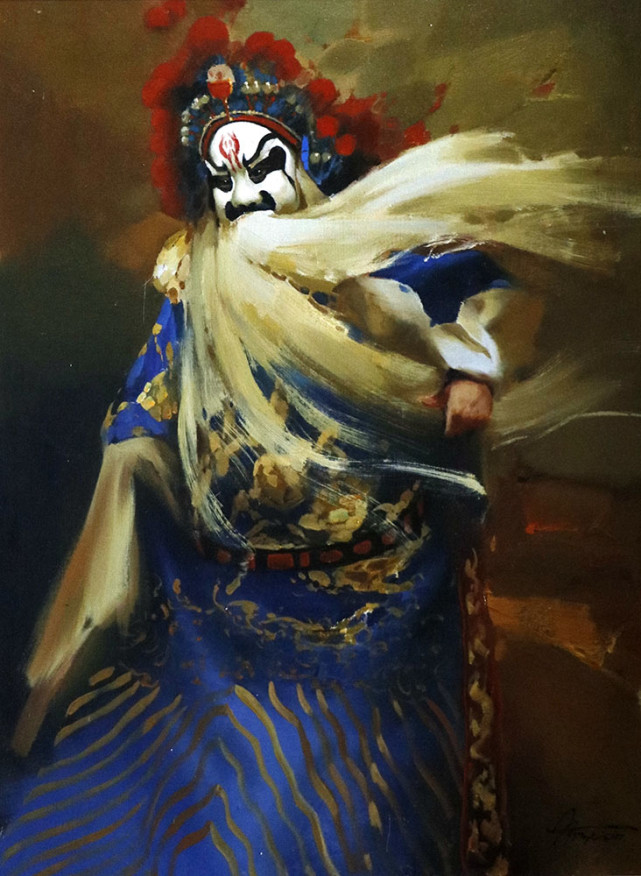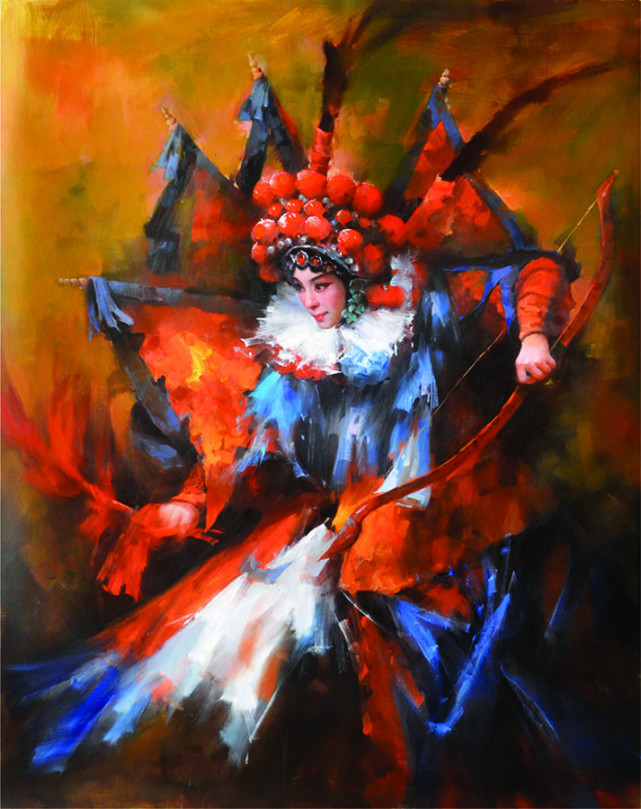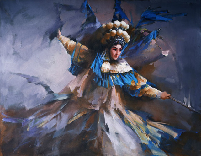 ![]() 京剧与油画这两种元素相碰撞,无论是在时间上还是在空间上,可谓意蕴深厚。民族京剧与西方油画这两者的融合,是一种尝试和探索,这需要创作者具备与深厚的文化积淀和精湛的表现技法。既要注重人物的精神,又要追求表现的张力、表达心灵的映射以及情景交融的艺术“画境”。作为富有独创才能的艺术家,赵新颖追求的是一种深层次的文化内涵和精神理念,以京剧人物为主旋律的构图,用丰富的艺术表现形式,在油画语言的造型、色彩构建上,直抒胸臆,拓展了中国油画的表现空间,创造了一种生动而又极富个性的表现形式。