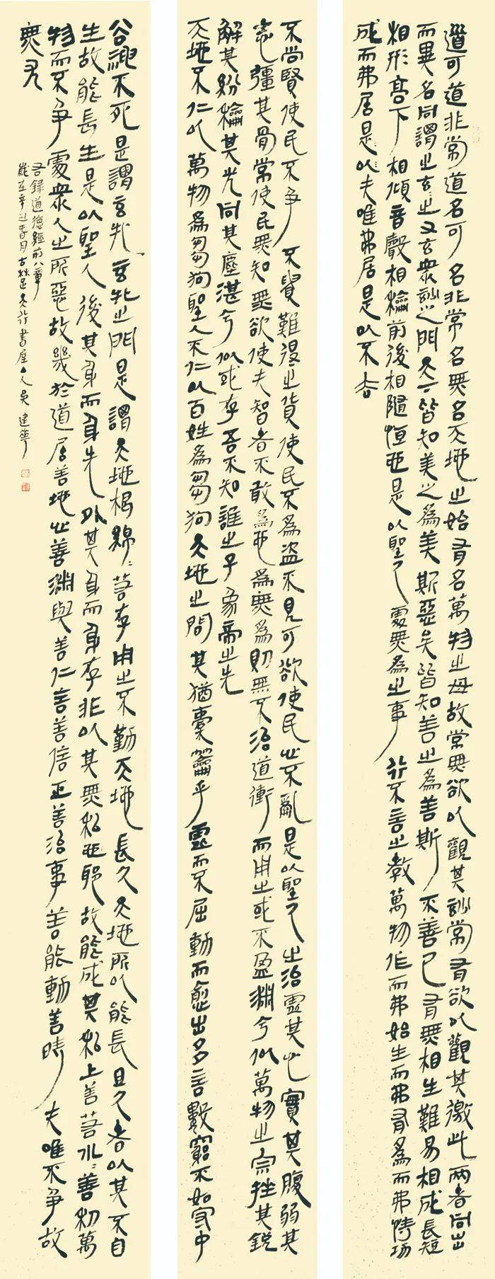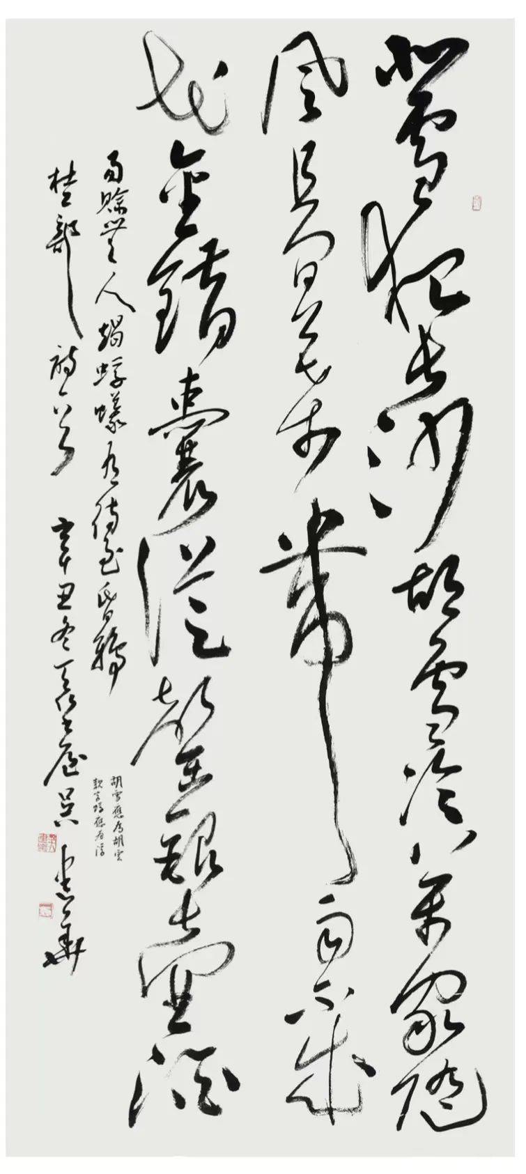 在书法创作的道路上,建华有欢乐、有痛苦、有执著、有彷徨,那灵动的点线,有时似水,有时像火,让他慨叹生命之轻。