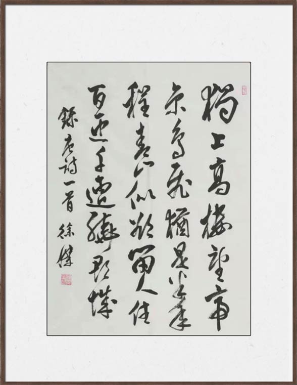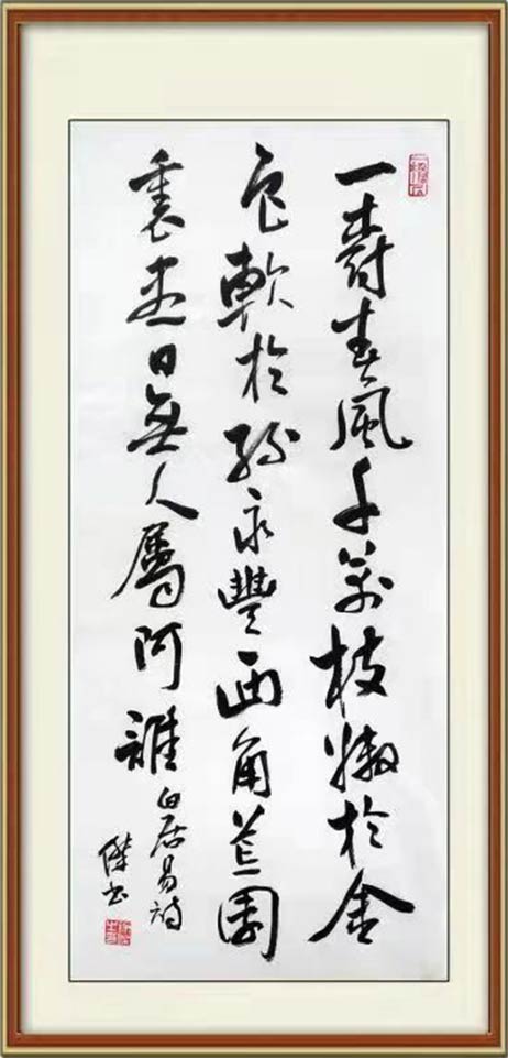 他从事书法创作数十年,从来不惑于物质不惑于名利,不困于人生五味,他以澄澈之怀人文之情的器识涵养笔墨。他书法作品的格调、线条的线性与线质,以及书写的词句内容融合一致地透出他的人文情怀、人文关怀、人文精神。