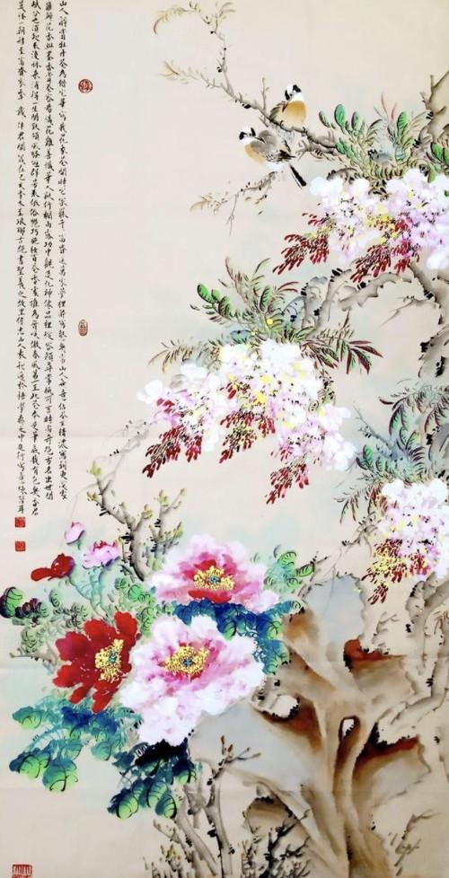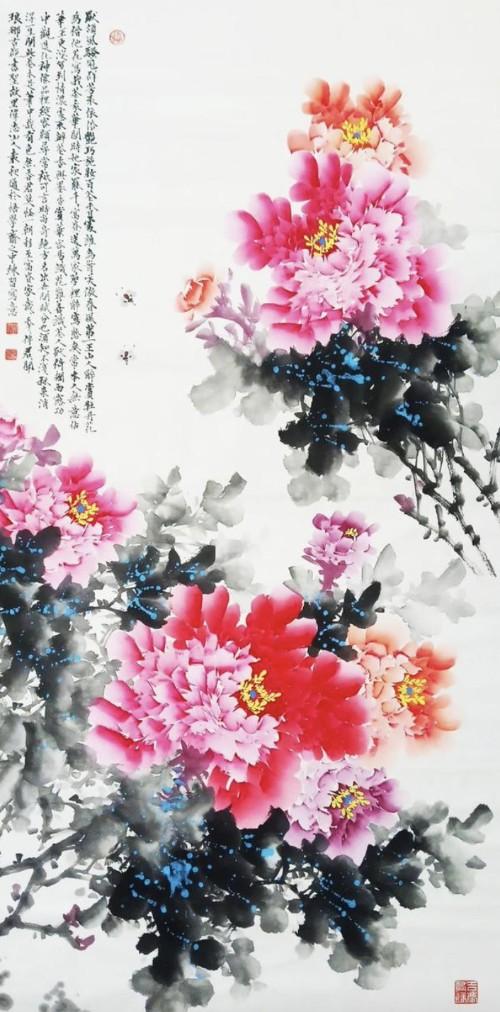 题完诗后他又自言自语:“雪梅争春,这是雪梅吗?对,这幅梅花图还缺一块大雪。“于是他用瓶盖倒了点白色国画颜料出来,放在眼前,然后用嘴使劲一吹,可又不得了,只见纷纷扬扬的大雪一片片地落在了含苞怒放的梅花及枝干上,洋洋洒洒蔚为壮观,和通的才气由此可见一斑。