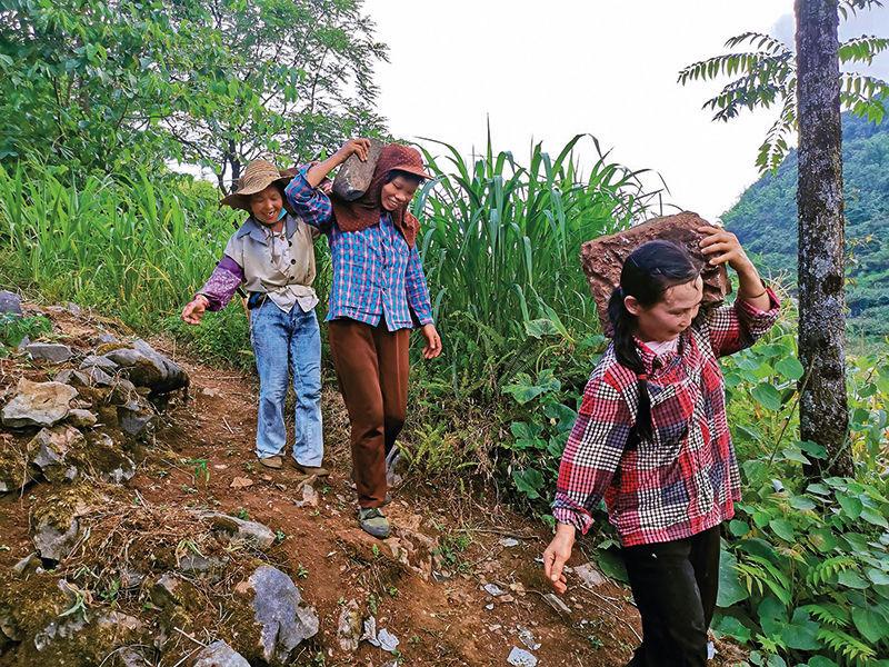 绝壁上劈开天路 2001年某天清晨,一群村民扛着农具出门,去的却不是农田。他们走向大山,开山劈路,日复一日。 2002年嫁到琴榜屯的许秀芬,扛起农具,汇入修路大军。 “除了锄头、铁铲、簸箕,我们还用钢钎、铁锤这些更硬的工具。”许秀芬拉出一把伤痕累累的大铁锤,手柄已半断,“已经数不清断过多少回了”。 渐渐地,这些工具越来越难以“啃食”坚硬的石山。爆破开山成为村民的新出路,修路成本越来越高。 “和这条路较劲了几年,能借钱的地方早就借遍了。”2005年7月,40岁的许秀芬选择出去打工补贴修路费用,丈夫则留下继续修路。然而同年11月,一场变故将她召唤回来。 凿开的石路延伸到数百米绝壁上,这场修路战到了最难的攻坚期。为了打炮眼,村民们在能落脚站立处搭起竹楼,无落脚处就从悬崖顶端往下吊人。不幸的是,一大团泥块从山上滚落,砸中了许秀芬的丈夫。 “他被人拉住没有掉下悬崖,但当场就被砸晕了,躺在床上无法起身。”许秀芬又回到一贫如洗的家。 身材瘦小的许秀芬,既要扛起分段到户修路的责任,还要兼顾一日三餐需喂食的丈夫。 “2005年11月1日到2006年5月24日。”那段煎熬的岁月,许秀芬记忆犹新。幸运的是,丈夫病情逐步好转,最终能够站立。 有段时间,修路暂停了。“大家都出去打工,实在没有钱买雷管了。后来村民又一起回来,继续修路。”她说。 路不通,就只能困在贫穷里。屯里的退休小学教师潘日球说:“那时我们都没计算过,到底哪一年才能把这条路修通。” 2009年,村民无偿投工投劳数万个工日,终于在绝壁上开辟出宽5米、长6公里的“天路”。 在那段最艰险的峭壁旁,村民刻下一行字:“悬崖峭壁通无阻,心足矣;欢天喜地过山川,意满哉。” 有了路终有门路 午后,猪叫声响彻山间。 “今天屯里杀头猪,试着做些腊肉腊肠。”在人群里忙活的许秀芬顿了一下说,“味道好就会批量卖出去。” 猪肉的滋味本是“甜”的,在许秀芬的回味里却多了苦涩。丈夫卧病在床的半年多时间里,她白日挥汗修路,夜晚常要为第二天要买的猪肉发愁。“医生交代要吃肉养着身体,他两天就要吃三斤猪肉。我不能出去打工,你说我上哪找钱去?” 借到了钱,出门买肉还要走6公里山路。 “嫁过来时,他爸妈已经不在了。家里连一口锅都没有,房子烂得要命。”许秀芬叹了一口气说,“我也是个穷苦人,谁想到这么苦?” 20年前,琴榜屯连辆摩托车都开不进来,外面很少有人愿意嫁到屯里。潘日球说,过去没路时,卖一头猪要五六人轮流抬出山,不敢多养。 路一通,卖猪肉的老板骑着摩托车来了。“这是第一辆开进琴榜屯的车,全屯人都跑来欢迎。”潘日球说。 路修通后,大家首先想到的是怎么还债。砍竹子,1根竹子小的5毛5,大的1块5,再大的都是2块4;养牛,小牛养大了卖掉,留着母牛来年再生小牛……“有了路,却没有门路。”潘日球说,“猪、鸡这些依旧不敢多养,养多了往哪卖呢?” 随着脱贫攻坚战的到来,2016年当地党委政府投入100多万元给“天路”做硬化。2018年,“天路”又加装了安全防护栏,一直通到琴榜屯内,按照脱贫标准,逐一补齐基础设施短板。 一间间土坯瓦房消失了,当地建起一栋栋水泥楼房。安居后的琴榜人,开始乐业。“有了政府的奖补和搭建的销售门路,我们大伙都做起了规模养殖。光说这养猪,最多的一户养了上百头。”潘日球说。 靠着养殖,许秀芬一家2018年摘了贫困帽。新建的水泥楼房里还未装修,许秀芬指着贴满奖状的一面墙,“这是我们家最好的‘装修’。准备考初中的女儿成绩还可以,希望她将来能走出大山。” 苦日子酿出甜 琴榜山山腰上,穿着民族服饰的许秀芬在前带路,沿着石梯拾级而上。一步一块石梯,古棠村驻村第一书记周理,把这里叫做“千步石梯”。 登顶琴榜山,望不尽山海茫茫,令人心旷神怡。“那时我就想搭几块石梯,以后方便游客上山。”周理带着志愿者开了头,“村民们就从山上背石头,一直背到山顶,修出1000多步石梯。” 背上的大石头,将身高不足一米五的许秀芬衬得更加娇弱,背后常青一块紫一块。“不光我一个人愿意这么做,每个人都说‘去吧,一起去修’,就这样修了3个月。” “琴榜人乐于奉献、不等不靠不要,我很敬佩。”周理说,被村民主动修建千步石梯所感染而产生的社会募捐,修路的村民并不愿拿,“村民说拿来搞产业吧,琴榜屯的甜蜜事业由此开篇。” 如今,乡村振兴热潮涌进琴榜屯。周理拍摄的琴榜人发展产业的照片里,总有许秀芬的身影。 “在耗尽心血劈开‘天路’后,愚公移山的韧劲,已凝结在每个琴榜人的心魂中。”周理说,“我们要靠这股劲来助力乡村振兴。” 许秀芬小心揭开山上的蜂箱,仔细看着蜜蜂的生长。在第一批蜂箱试养中,她主动认领了5箱。“那时没啥经验,被叮出满身包。第一书记从外面请了有十几年养蜂经验的人来教,还给我们考试,我慢慢就学会了,头两次就产出了40多斤蜂蜜。” “可以卖150元一斤的蜂蜜,她全拿去送人了。”周理一旁插话。 “村里每家每户,我都给他们一瓶尝尝。”许秀芬腼腆地说,“那是我第一次喝蜂蜜,原来这么甜。” 如今,在名为“琴榜山”的微信小程序中,挂售着多件印着琴榜山商标的产品:蜂蜜、挂面、杂粮、蛋黄酥……其中的蜂蜜,有瓶装、袋装、易拉罐装。 周理说,现在琴榜屯已有200多个蜂箱,山上的土地也流转了,种上了油菜
