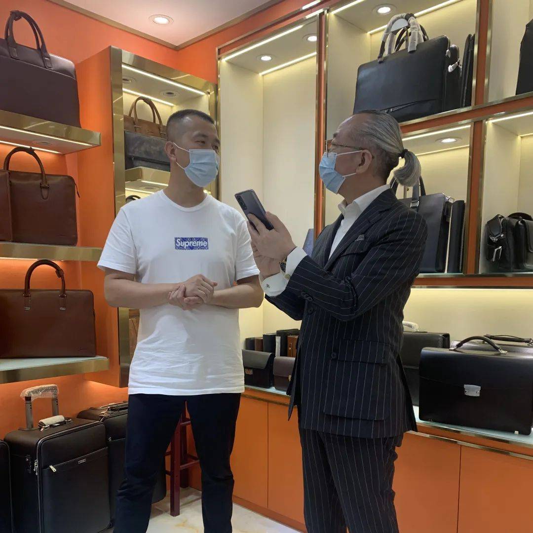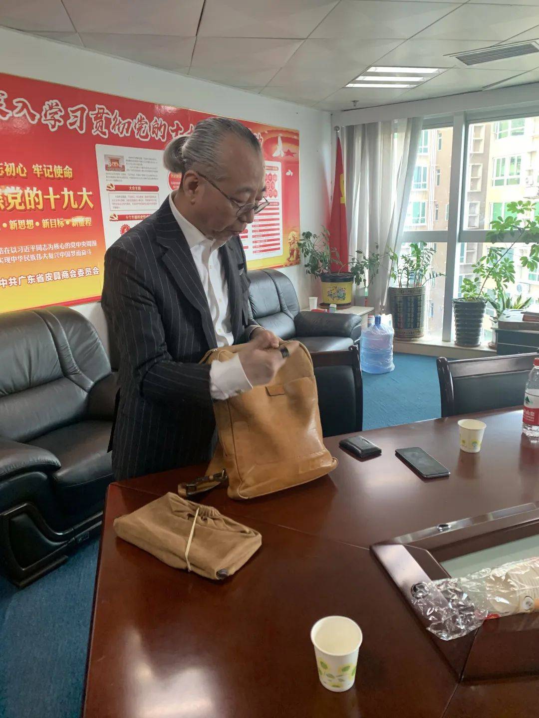 座谈会后,丹迪老师去白云皮具城时尚中心一期、二期市场的品牌商户进行实地考察交流,他对这次走访的企业产品表现出极高的认可和兴趣。“我这次主要来发掘寻找好的工艺、好的产品材料,并希望能进行合作,共同开发制造全新的产品。”