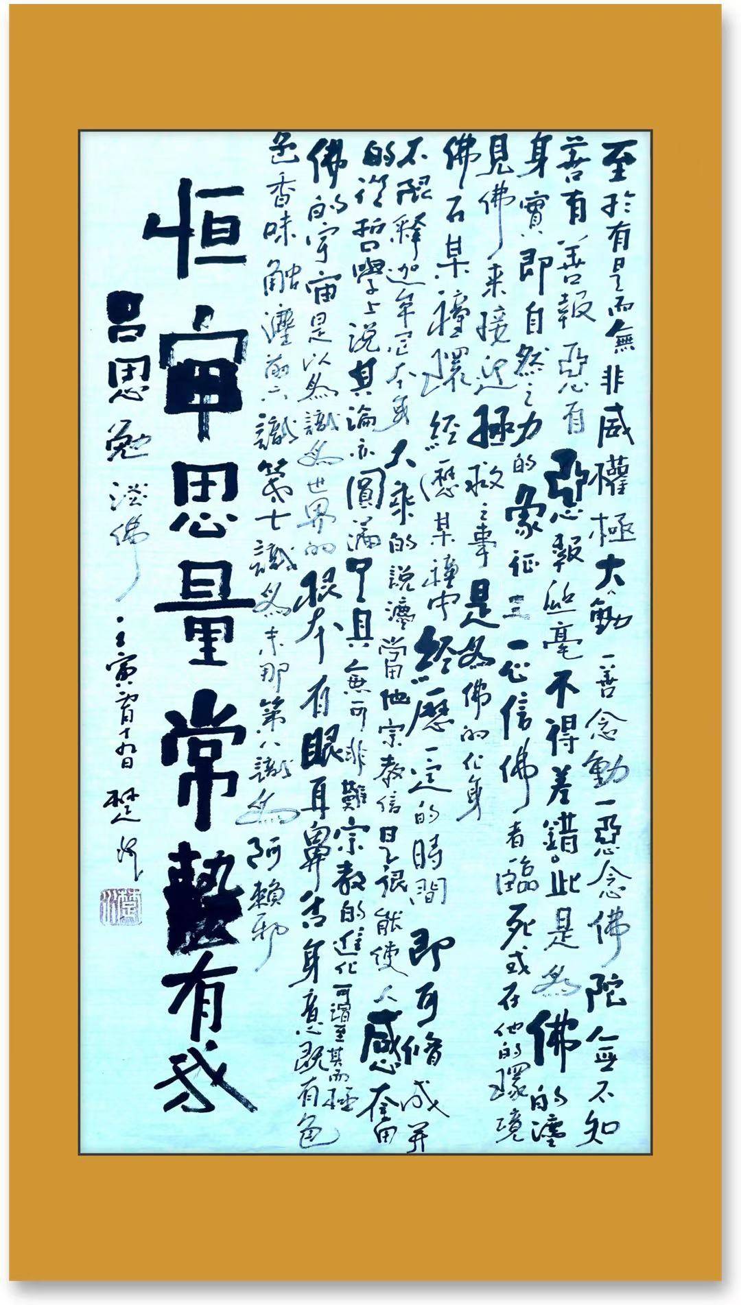 和光同尘,又亲书“苦也”二字赠上海张耀伟先生。可惜的是,当时没有能够请教老人家,这第七识与第八识如何悟得,而顿开茅塞。吕思勉先生认为,,一切现象,都以人自己的本位而认识,一切利害,都以人自己的本位而打算,念念以自己为本位,就是第七识----未那的作用。第八识---阿赖耶,则由第七识所生,为一切识的根本,是一切欲望的源头。必须把这此除去,心灵才能平静,也就是所谓的灭识,至于空无所有,有无,也就是佛家所说的色空。