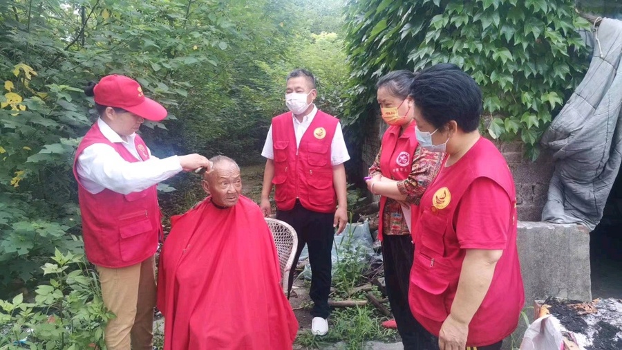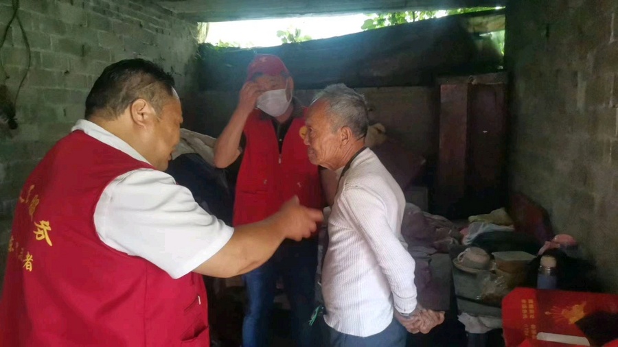 经过大家商议,第二天,他们主动过来帮老人修理房子,然后又帮老人把屋子打扫干净做好整理,还给老人买来了油、面条、大米、鸡蛋等生活必需品,老人看着志愿者帮忙修好的房子,想着以后不会再淋雨了,瘦黑的脸上露出了久违的笑容。两年多时间里,志愿者不间断地为老人服务,时刻关心着老人,经常给老人理发,收拾屋子,让老人总算有了一丝的温暖,让他体验到了有亲人的感觉。