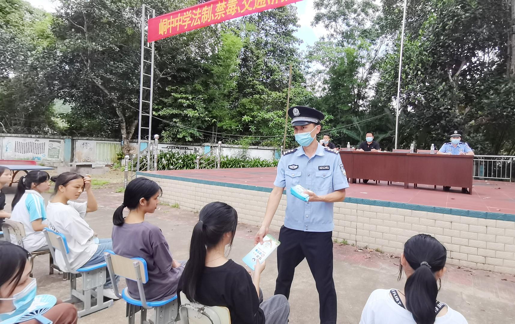 为进一步加大禁毒宣传力度,在做好未成年人暑期安全教育工作的同时,增强未成年人远离毒品的意识,在6.26国际禁毒日来临之际,峒中边境派出所联合东兴边检站峒中分站到辖区中学开展法制教育暨“携手禁毒,护苗成长”主题活动。