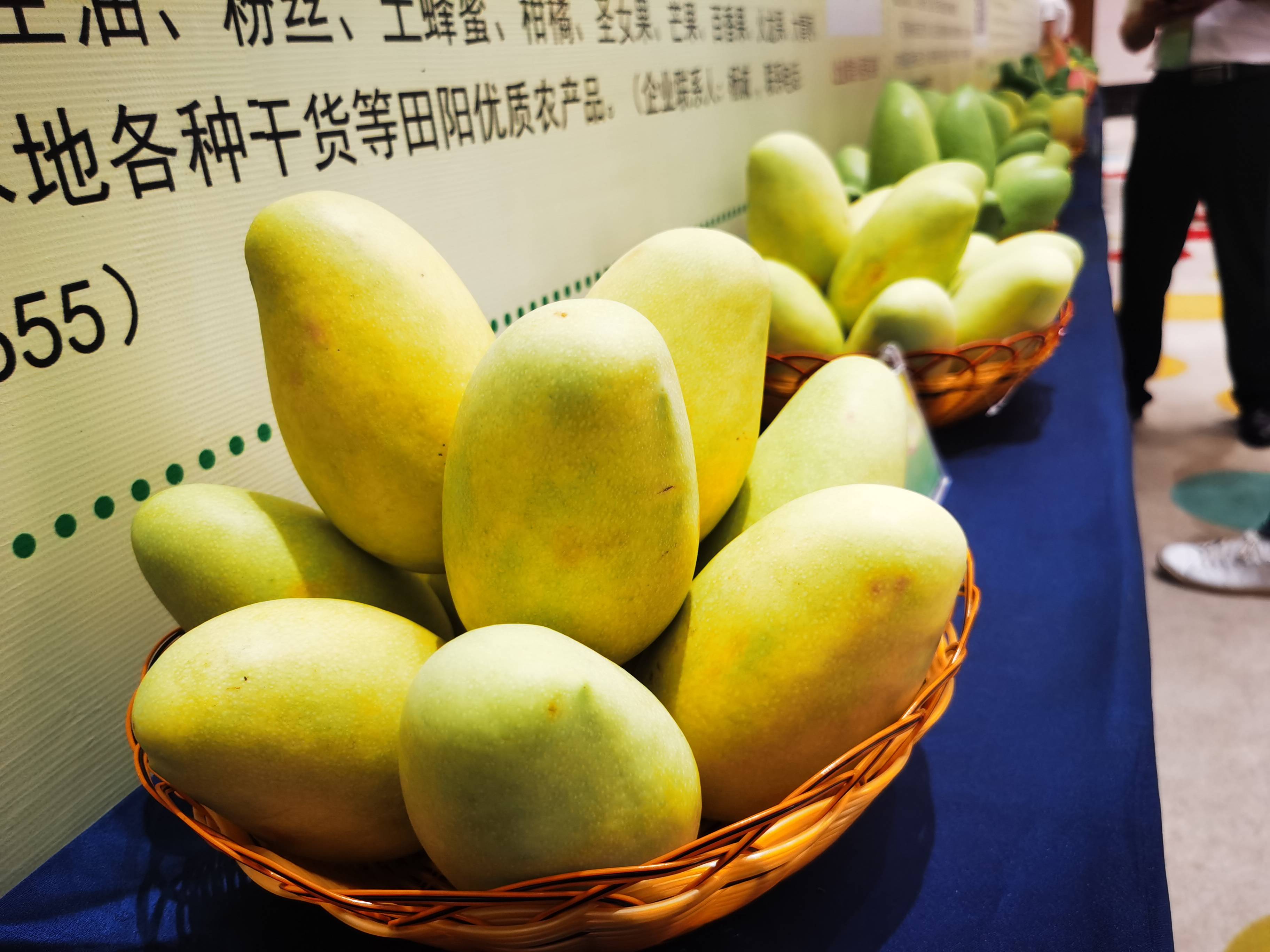 2022年第七届“互联网+百色芒果节” 启动仪式暨百色芒果产销对接会现场 百色芒果是地理标志保护产品、中欧地理标志互认农产品、国家农产品地理标志保护工程示范样板。2019年,百色芒果成为中国农业品牌目录产品,品牌评估价值为173.23亿元,品牌影响力指数评价为83.95分,在年度百强农业品牌目录产品中分列第14和16位。2021年,百色芒果获批建设中国优势特色农业产业集群,是目前全国唯一获批建设的芒果产业集群项目。