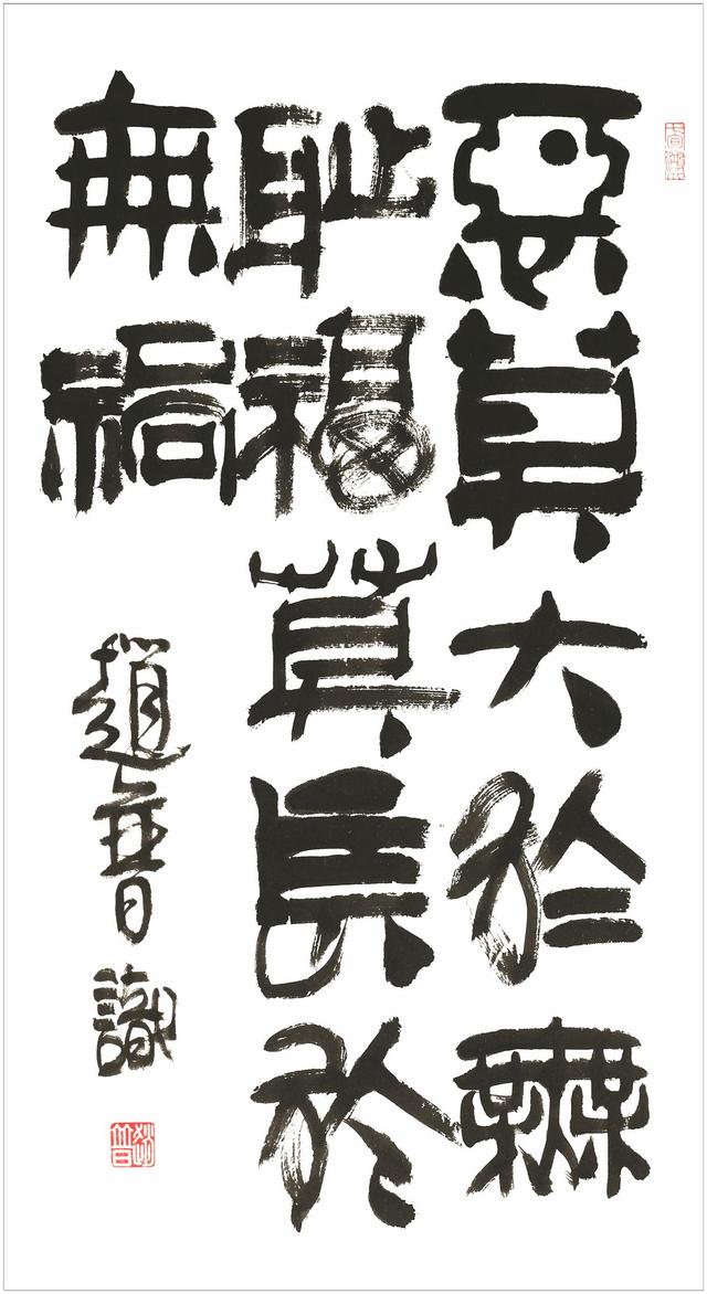 书法是中华传统文化的精粹,有着悠久的历史,独特的形态,丰富的情韵,奇妙的魅力。它风靡千年而不衰,凝聚着中华民族的智慧、感悟、人文内涵,诗情画意。折射着中国人特有的审美情趣及哲学观念,缔造了深厚的文化内涵和成熟的艺术体系。在当代书坛,赵普先生是书法界中具有博学多识、德艺双馨的艺术家。在书法创作方面有着自己的追求和价值取向;其书法作品有着丰富生活内涵和文化意蕴,注重表现和反映对生活的理解和认识,通过艺术创作传达自己人生的体验和感悟。 ![]() ![]() 赵普,1939年生于北京,首都书画界宿老,1983年北京书协初立时之百名之一者。中国书协会员,全国书画委员会副主席,中国管理科学院标准化教育研究院客座教授。 先生弱冠始攻汉隶,遍临《乙瑛》等数十种碑版,兼习石鼓、金文、唐楷、宋四家及明清诸家法贴。博览文史书论,上世纪八十年代,已名重京城。 1985年应邀为“圆明园遗址公园”题名牌,在天安门城楼及曲阜等多地题留墨宝。 1999年,先生荣退,随即“闭关”地坛斋宫十五载,研习书法,成绩不断显成。终于写进了继古来新的独家面貌,即:中锋笃,方为主,减蚕雁,融篆行的“赵隶”家风! ![]() ![]() 著名理论艺术评论家柯文辉先生说: 赵隶,消化遗产,取经精用宏,方笔方构,中锋笃实,奉汉碑金梭,存古拙神采,参证篆楷,自见流妍,调节经纬,隐去斧痕,大字小字疑聚意象,小件兼得巨幅奔腾。 2017年至2019年,赵普先生以八旬高龄隶书功写《道德经》《金刚经》及《论语》全文出版发行,创作了全新的隶书版本,将经典与书法有机结合,为弘扬传统文化作出贡献。 “老骥伏枥,志在千里”已入八一旬之老先生,一如既往,笔耕日新,正在向“人书俱老”的明天日潑斛墨。 ![]() ![]() ![]() ![]() 赵普先生1985年为圆明园遗址公园题匾 博览众长 灵径互通——记书法家赵普 赵普先生幼年即以品学兼优、能书善画闻名乡里,嗜临颜、柳、赵诸体楷书,根基深厚。弱冠苦习邓石如、赵之谦小篆,颇能神会二氏笔意。此后,攻汉隶近四十载,凡《乙瑛》、《礼器》、《张迁》、《朝侯小子》、《鲜于璜》诸碑,《韩仁铭》、《石门颂》等,百遍得形,千通获味。人写字,字炼人,其乐无涯。其间穿插研习金文、石鼓、晋唐行草,皆夜以继日,不求闻达,而肃然霭然,谦逊虚和,见重书坛。 ![]() ![]() ![]() 七十年代末,始参加国内外重要展览,作品辑入名种大型选集。八十年代以来,陆续出版了《隶书入门与提高》、《隶书学习与欣赏》、《赵普书法集》、《隶书解释与临习》、《歌词偕书法》(与王健先生合作) 、《赵普书画集》及《治家格言》字帖,流传于国内及东南亚各地。学者称其书风古拙,气魄宏大,他用笔险劲沉厚,间架章法殊多破格处,故动静相生,正奇互变,黑白跌宕,苍莽壮阔。他的字上承篆情,下取楷意,学养襟怀,跃达纸外。先生之画为书名所掩,虽作不多,精品实不在其书之下。山水师法石涛,融入宋画之绵丽,铁峰披雪,野渡寒林,境界遥深。写竹秀挺,时见草书丰姿,翠扑须眉,摇曳有声。作梅遒辣,赤霞冰骨,喜气盈枝。画鸟野逸多趣,配以幽泉寿石,构图每露匠心。 ![]() ![]() ![]() 先生博览群书,书史画论,诗词画跋,常伴芸窗。为诗文联语,明白如话,自有寄托。熟悉中外古典音乐,百闻不厌。尤爱京剧,引吭高歌,酣畅有余音。欣逢佳景名卉,信笔所之,法度自由。先生年富力强,前程辽远,厚积薄发,灵径互通。 古稀以来,大部时光独居地坛公园斋宫一角,临池而外,尤留意于老庄佛家典籍,啸松林,步朗月,吟味古帖若李杜韩苏诗文,觅精神燧道使之照映互通,渐悟平凡之美,思扬弃盔甲势态,归于大朴,默锲于名利场外,享今是而昨非,以婴幼襟怀,本色高蹈,再生一次,使无态而泛美自至,成败利钝尽弃度外。天道、人道、艺道,一而三,三而一也。先生上下求索,意其在斯乎? (文/著名艺术评论家柯文辉) ![]() ![]() ![]() ![]() ![]() ![]() ![]() ![]() ![]() ![]() ![]() ![]() ![]() ![]() |