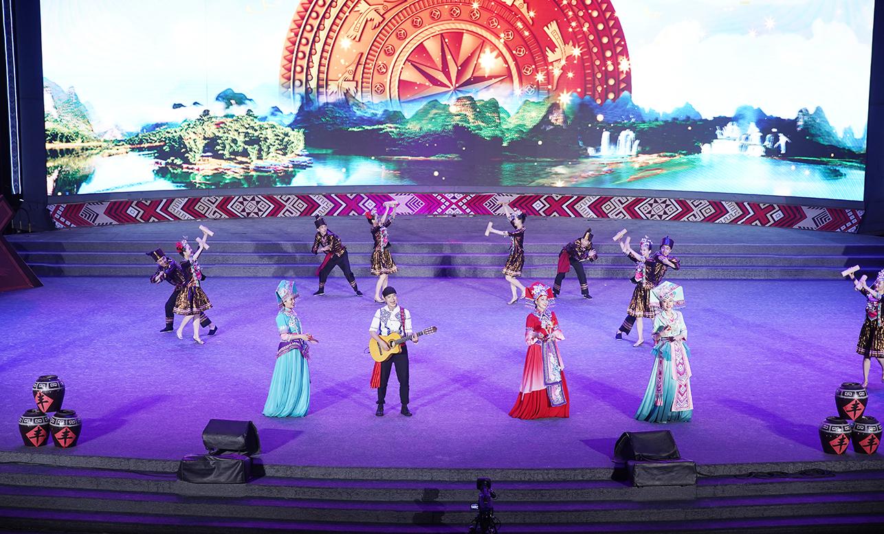 晚会现场 石榴花开美八桂,踔厉奋发启新程。晚会围绕“四个家园”建设,坚持思想精深、艺术精湛、制作精良的原则,不断升华晚会的艺术内涵、文化内涵和时代内涵;八桂大美山河和民族文化相连接,红色文化基因与新时代精神相结合,充分展现了广西壮族自治区各民族优秀文化传承、保护、创新的累累硕果,推动形成各族人民团结奋进的强大精神纽带。(宁巧霞) |