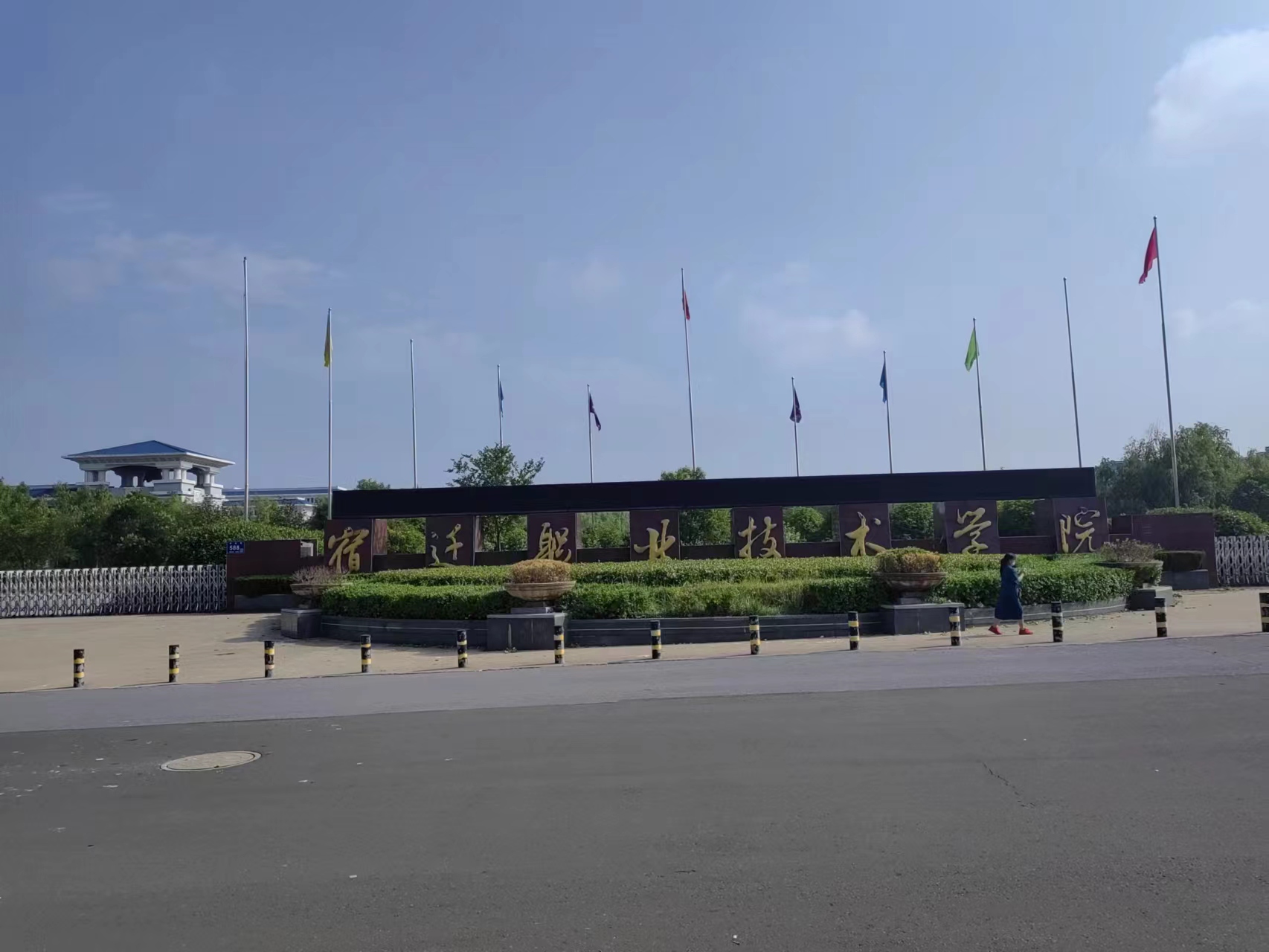 怀化考察团代表孙董事长与八维集团王利主任咨询时的场景 江苏宿迁职业技术学院是一所由经江苏省人民政府批准、教育部备案、颁发国家承认学历的全日制普通高等院校。2015年12月份,由八维全资收购。八维宿迁学院位于宿迁市湖滨新城高教园区,拥有占地面积500亩、规划面积500亩、建筑面积13万平方米的独立校园。
