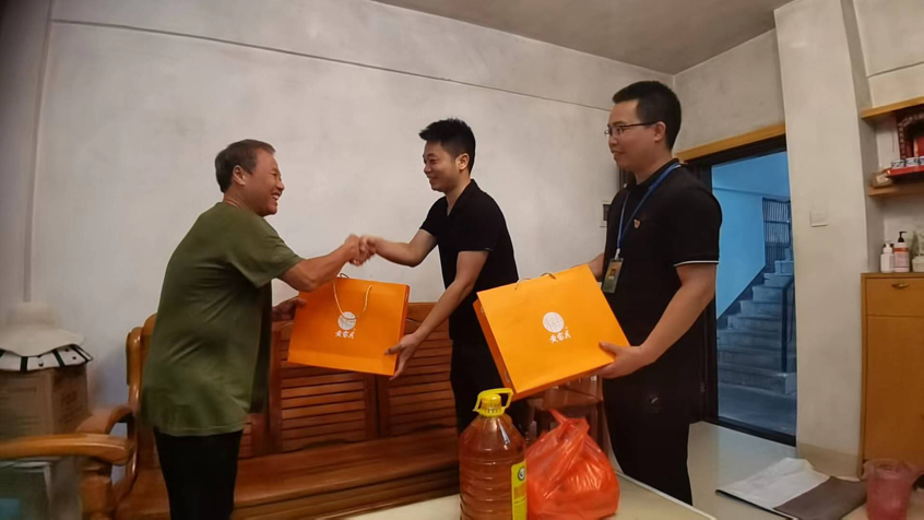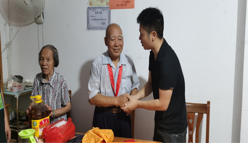 家住志远社区大沙田富远房地产综合楼的邓干新叔叔今年78岁,光荣在党56年。两位老党员都是经历过枪林弹雨的老革命战士,退役后一直以党员的标准严格要求自己,约束自己的言行,坚持党的路线、方针、政策、坚定理想信念,退役不褪色,积极发挥余热,为社区建设,为社区群众,为党和政府的事业尽心尽力。如今年事已高依然保持乐观向上和百折不挠的军人风范,大家钦佩万分。大家伙诚挚地给两位老人家送上节日慰问品,嘱咐他们的注意保重身体,衷心祝福两位老人家吉祥安康,长寿百岁。