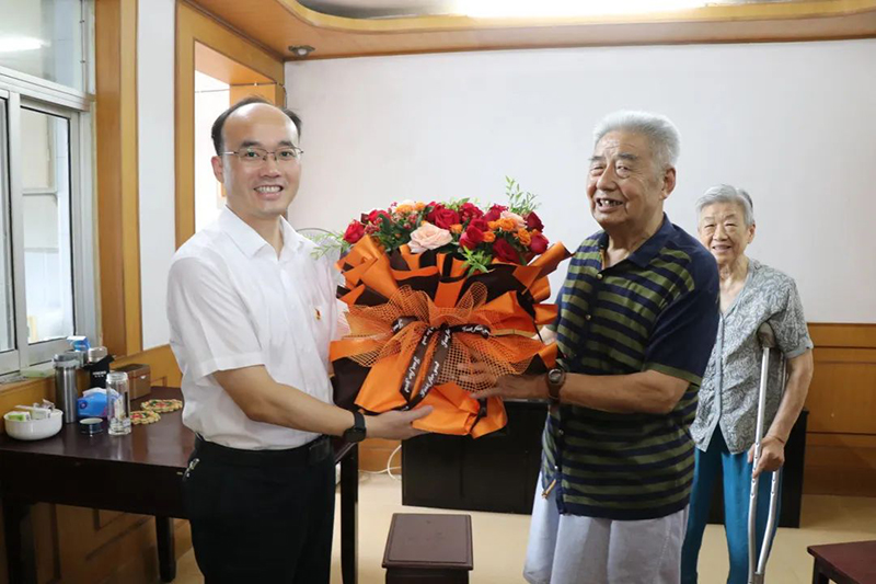 ![]() 6月30日下午,淮安区教体局局长蒋雪峰登门为淮安中学老党员周家琪颁发“光荣在党50年”纪念章。区教体局党委委员、工会主席孙青,教育科科长姚树洲,党建办主任张代成,淮安中学副校长马骏、校办副主任邵娟参加活动。 ![]() 周家琪老师,1961年2月入党,1962年6月从淮阴师专调到淮安中学工作,在淮安中学连续工作19年后,调到三中,后又调到电大、四中,退休后关系转回我校。他热爱教育,爱岗敬业,无私奉献,爱生如子,为淮安区的教育事业做出了贡献。 ![]() ![]() 在老党员周家琪家里,蒋雪峰局长为老党员周家琪佩戴纪念章,送上慰问金和鲜花。蒋雪峰局长说:“明天是7月1日、党的生日。您是我们教育界尊敬的老前辈,也是老党员、模范党员,今天我们一是来看望您,二是来表达敬意。今年淮中高考成绩很好,一本二本达线率大幅度提升,还有进入省前一百名的学生。高考成绩好,离不开一代又一代淮中人的辛勤耕耘和辛苦付出,所以您更值得我们由衷地敬佩。” ![]() 老党员周家琪对党组织的关心表示感谢,他称赞淮安区教育发展得非常好、淮安中学的教育教学成绩优秀。他说:“淮安中学取得如此辉煌的成绩,我早就知道了,淮中每年都在进步、都在发展,作为老同志、老教师、老党员感到非常欣慰!” 临别时,蒋雪峰局长祝周老师“身体健康、天天开心!”并表示,待周老师90岁、100岁再来看望。周家琪老师祝愿:“在区教体局的领导下,区教体事业蓬勃发展,淮中教育蒸蒸日上。” 同日上午,淮安中学邀请老党员周家琪到学校交流指导工作,并就学校发展等方面进行了深入交流。 ![]() 在翔宇楼三楼会议室,于敏校长说,非常欢迎周老师回学校来看一看,淮中的传统还在继续,老淮中的精神还在传承。您为教育奉献了一辈子,获得“光荣在党50年”纪念章,非常了不起。祝周老身体健康,笑口常开!欢迎您有空常回学校指导工作。 于校长和周老师回忆畅谈了那些年在淮中的往事,现场笑声连连,非常温馨。周老师非常关心学校的高考,他为近年来学校取得的一系列好成绩而高兴。(房春东) |