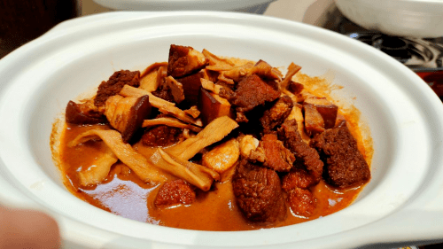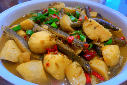 与A君等10个朋友坐下来,红烧大头鱼、毛芋炖泥鳅、红烧肉、醋鸡等等农家菜,无不秀色可餐,令人味蕾大开,还有那土豆条、茄子、四季豆组成的“地三鲜”亦是让人垂涎欲滴。在众多的美味佳肴中,两道菜特别向“吃货”推荐一下。