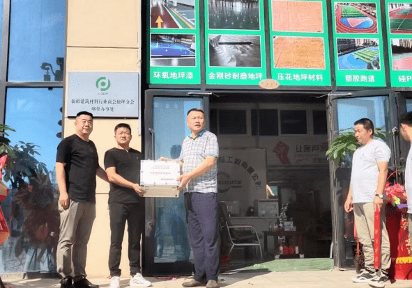 --新疆泽标地坪工程有限公司“喀什泽标建材超市”开业庆典仪式 6月30日上午,新疆建筑材料行业商会以及喀什当地地坪同仁一行百余人到达位于喀什华凌国际建材城的“豫新地坪材料一站式采购”店,新疆建筑材料行业商会地坪分会常务副会长单位、商会地坪分会喀什办事处主任、喀什豫新环保科技有限公司总经理王磊介绍说;一楼是地坪超市,展示各类地坪材料及工具机械设备耗材;二楼是“新疆建材商会地坪分会喀什办事处”办公室,既方便发展会员、交流洽谈等活动。又实现了地坪材料、工具、机械、耗材、一站式采购,极大地方便了客户、节省了时间、节约了成本。 --新疆喀什市豫新地坪材料一站式采购超市 上午11点30分许,“新疆建材商会地坪分会驻喀什办事处”揭牌仪式由常务副会长兼地坪分会会长刘洋会长主持,常务副会长李振江、商会地坪分会驻喀什办事处主任王磊共同完成喀什办事处揭牌仪式,地坪分会刘洋会长现场把价值4600元的地坪检测仪器工具套装交接给商会地坪分会喀什办事处主任王磊,希望大家今后能充分利用标准地坪检测仪器等手段,高标准、严要求抓好地坪施工质量,更好的为客户服务。