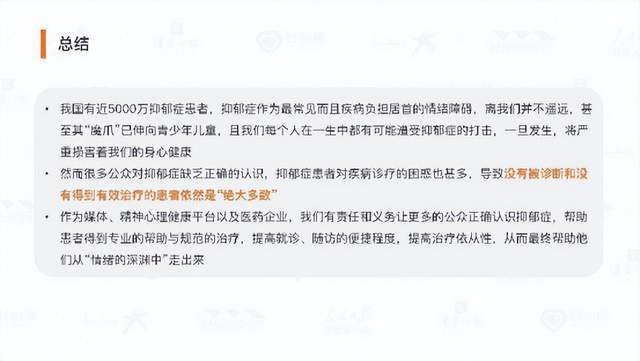其实抑郁症离我们并不遥远,作为生活中最常见的精神障碍,它困扰着绝大多数的人群。抛却现有的已确诊的抑郁症患者,还有很多的抑郁症患者没有被察觉,也还有很多人存在着走向抑郁的隐患。 作为媒体、精神心理健康平台以及医药企业,我们有责任和义务让更多的公众正确认识抑郁症,帮助患者得到专业的帮助与规范的治疗。 |