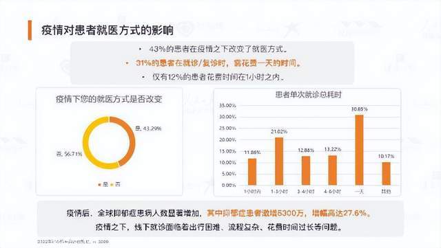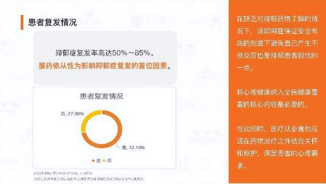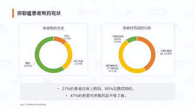 疫情后,线下就诊面临着出行困难、流程复杂、花费时间过长等问题,43%的患者在疫情之下改变了就医方式,27%的患者选择网上购药。但调研显示,仍有47%的抑郁症患者对所服用药品不够了解。