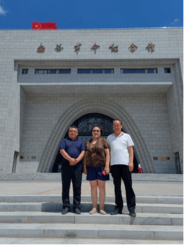 陕甘红军纪念馆副馆长张廷显与牛华朝 第五站参观南梁革命纪念馆。夏世鹏馆长亲自进行了讲解,纪念馆总体展陈以陕甘边革命史的基本脉络为主线,以宣传刘志丹、谢子长、习仲勋等老一辈无产阶级革命家和以南梁为中心的陕甘边革命根据地人民群众建立的丰功伟绩为重点,以资政育人为目标,努力打造成全国一流的爱国主义教育示范基地。纪念馆由综合展厅和个人专题展厅组成。参观结束后,牛华朝执行院长与夏世鹏馆长,开国少将、原兰州军区空军司令员刘懋功之女刘晋晋,陕甘红军戴占魁外孙、著名红色诗人王林栓就红色文旅与河南省美丽乡村研究院作了充分交流,南梁革命纪念馆与河南省美丽乡村研究院就南梁红色旅游开发达成了初步战略合作意见。