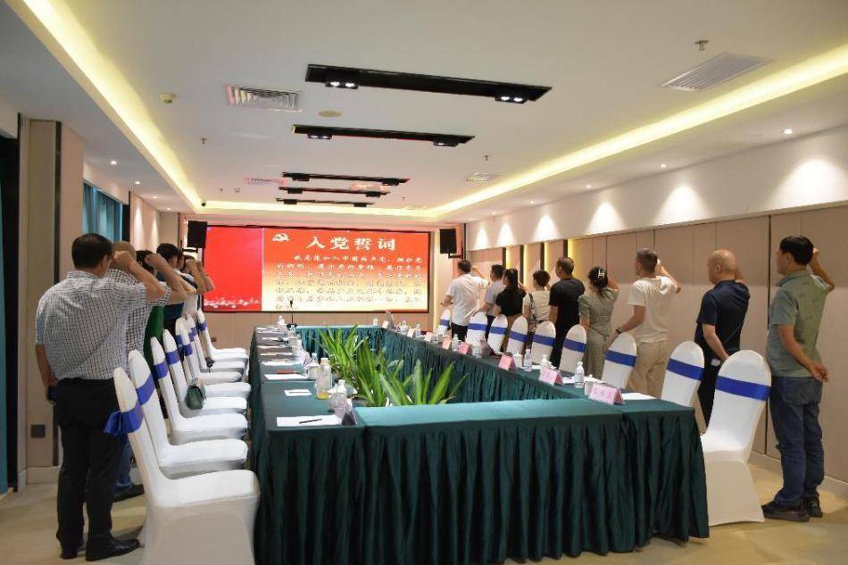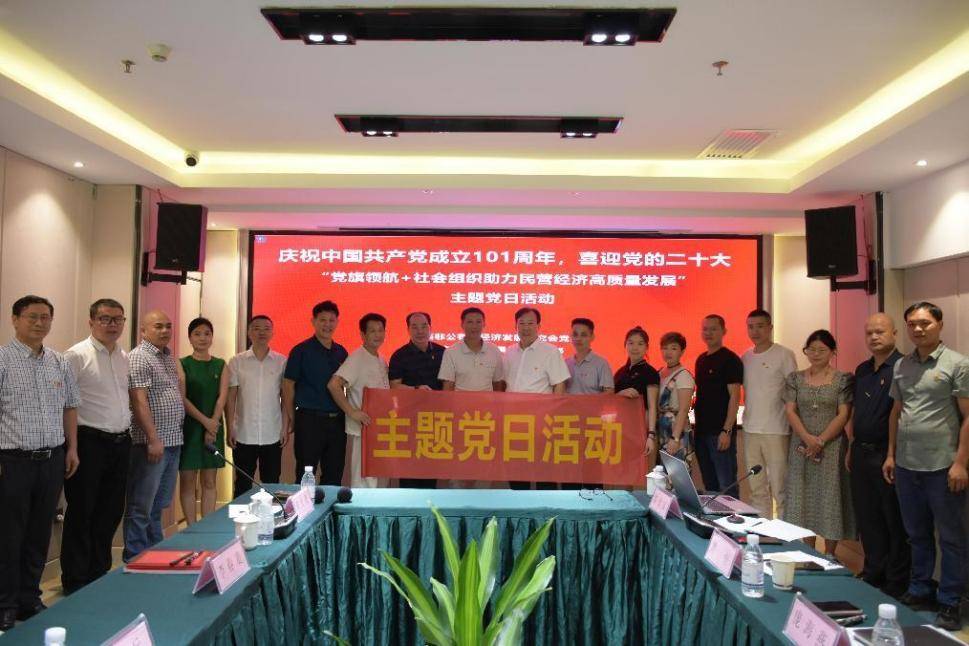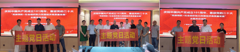 2022年7月1日,中共广西非公有制经济发展研究会支部委员会、广西红木家具协会支部委员会、南宁江西商会支部委员会在南宁景都国际大酒店联合开展“庆祝中国共产党成立101周年,喜迎党的二十大”主题党日活动,活动主题为“党旗领航+社会组织助力民营经济高质量发展”,三个支部党员共约20人参加活动。