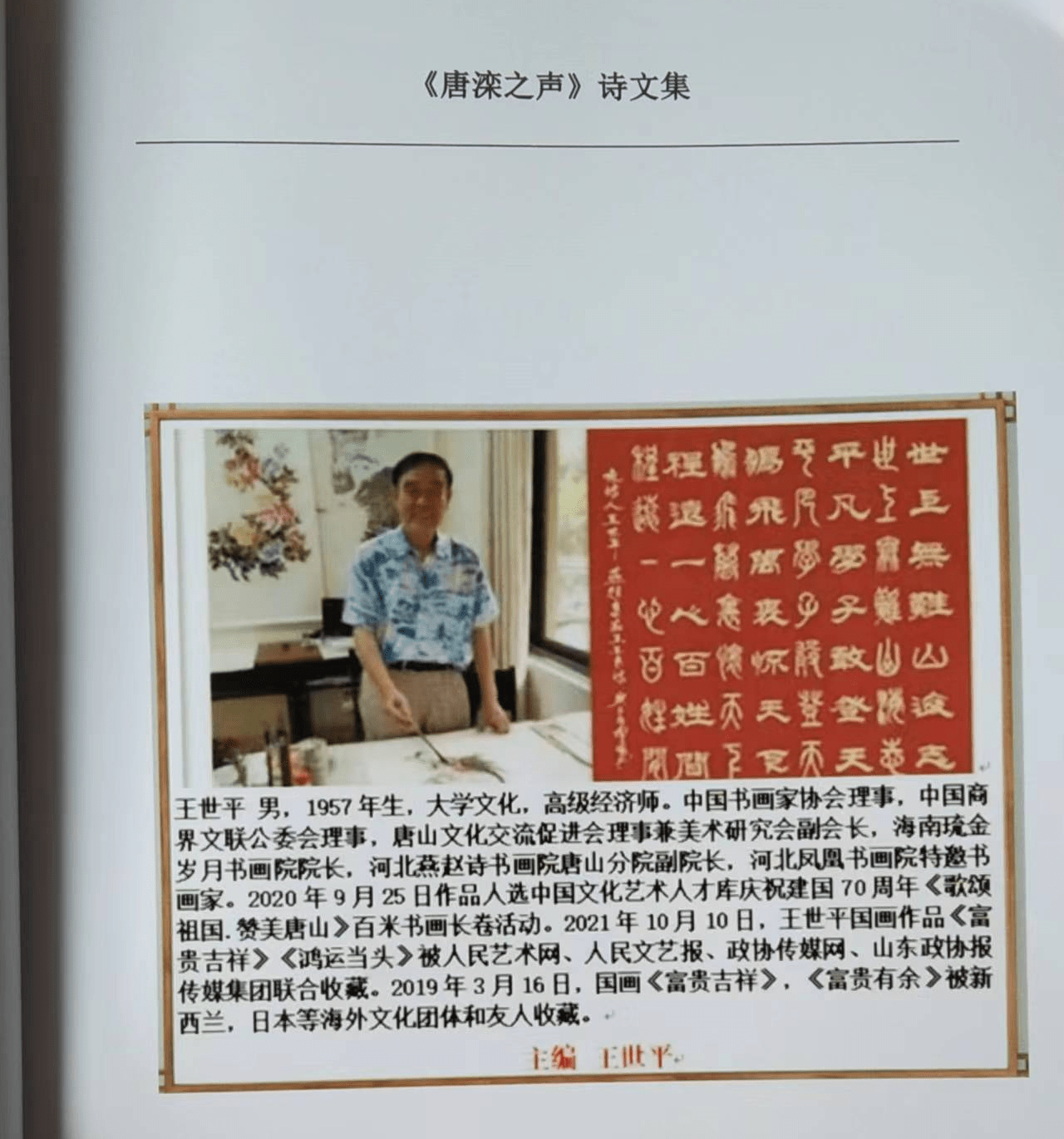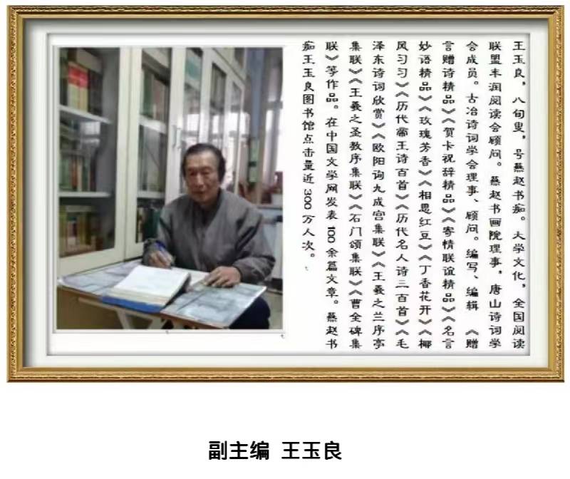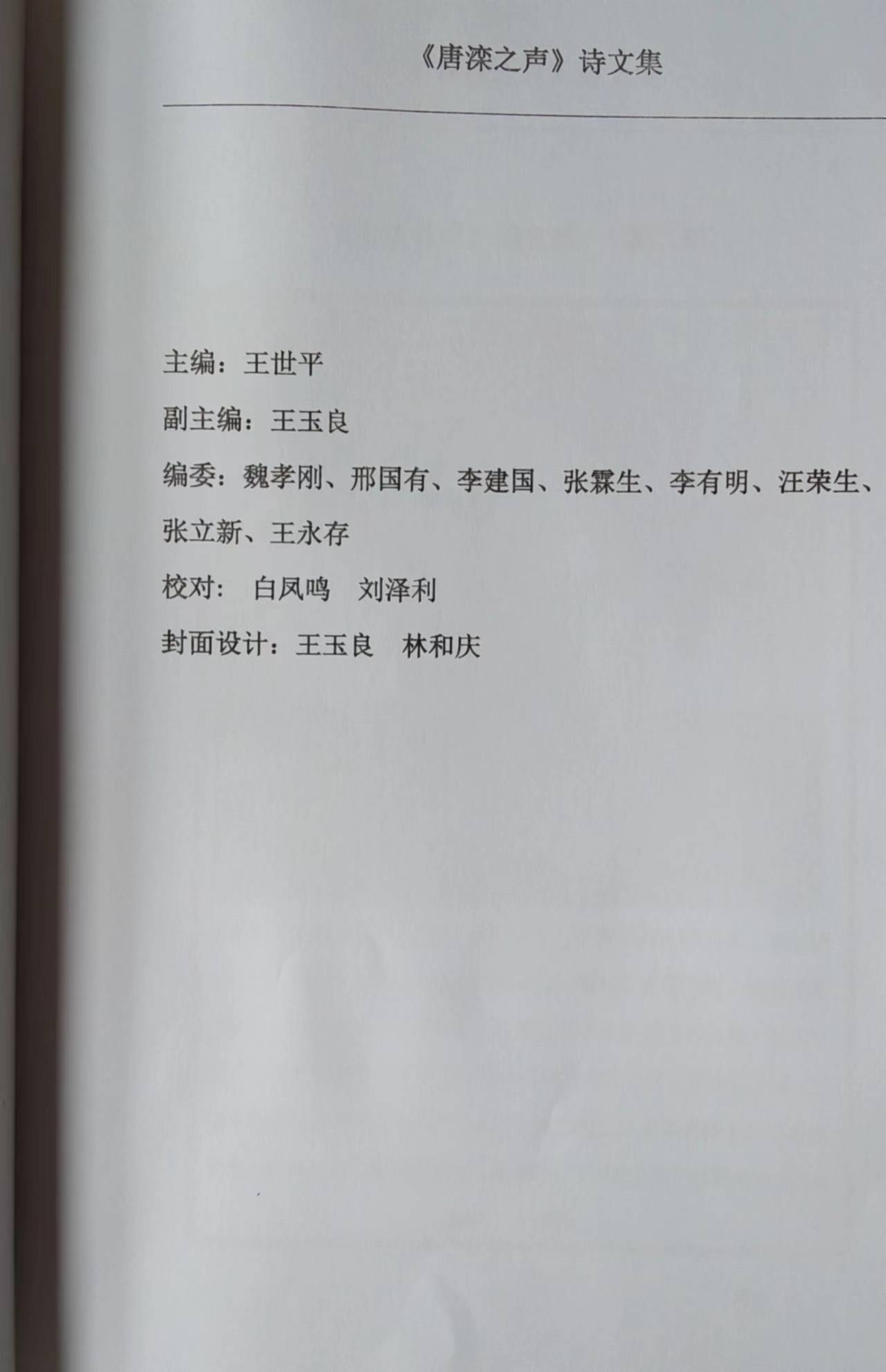 日前,由主编王世平,副主编王玉良。编委魏孝刚、邢国有、李建国、张霖生、李有明、汪荣生、张立新、王永存。校对白凤鸣、刘泽利。封面设计王玉良、林和庆多位老师支持协助。《唐滦之声》王国臣、么安全合著诗文集印刷完成。感谢老师们大力支持与付出!