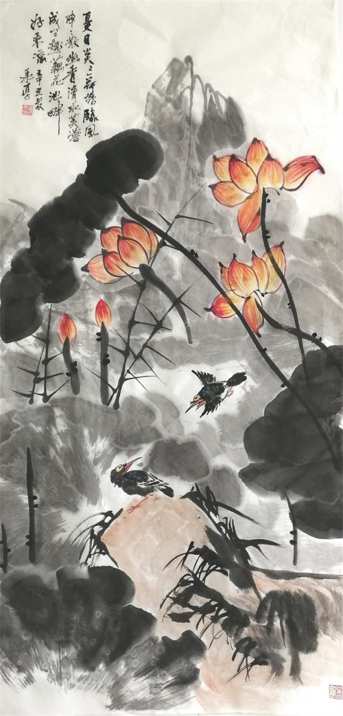 综览潘承厚的绘画,写意精神融注于他艺术创作的全过程。他的作品,写意之魂无处不在。中国画的写意,是绘画艺术的至高境界,是中国特有的绘画工具笔墨和宣纸,经过画家“物我交融”、“缘物寄情”而创作出来的艺术境界,观者与作者一起“随物宛解,与心徘徊”,从而去深入领略画作的品味与气韵。气韵,是一幅画的灵魂和生命,是画家艺术审美、生活体验,通过其娴熟独到的笔墨技巧,融注于创作全过程的内在情感的流露和表达。