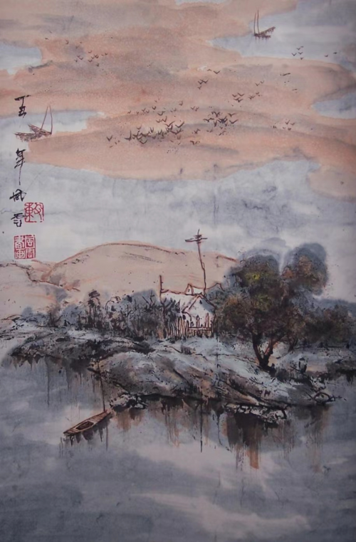当然,陈风云山水画得形神兼备,除了用笔精妙的原因之外,还有其画性超人的天资相助。作出中国画,努力是一个方面,天性是另一个方面。唯有努力无有天性,则容易成为画匠,只有像陈风云先生这样努力和天性作双重加持,才可以在画山水的过程中,历练出遂手应手的丹青功夫,在对境造意的过程中,可以为山水传神,亦可以为文化张目!文人画山水的雅质洒脱,如从心田里自然流露出来一样,带着天人合一的思维而作山水精气神,这些富有灵性质感的山水意象,绝非匠工所能为,而是画道入心,可以独于天地精神往来的贤家所作。