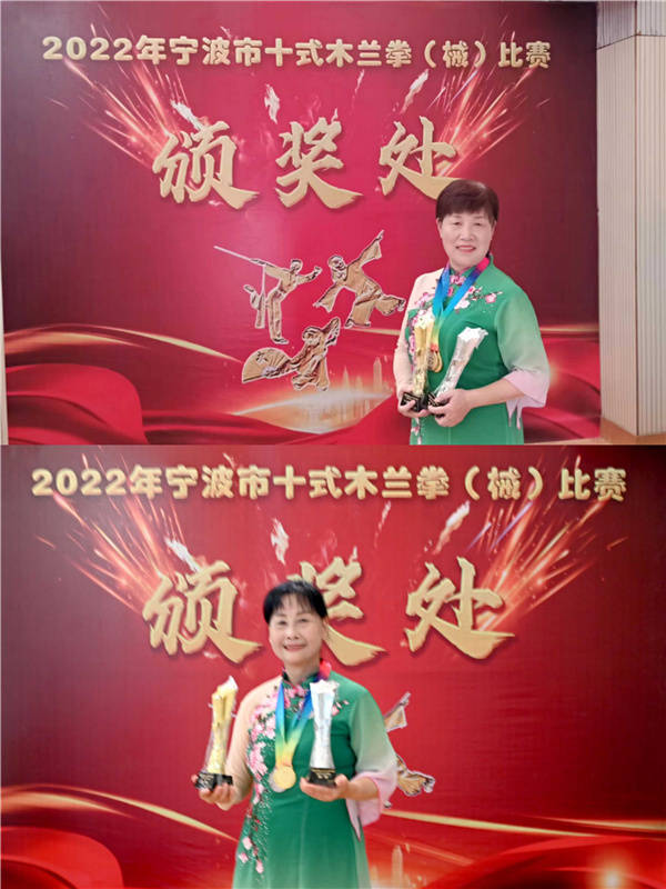 比赛分为三个项目,按比赛先后顺序,分别为木兰拳、扇和剑。经过一天紧张角逐、运动员精彩展现和裁判组公正打分,在木兰拳23个代表队中,余姚市武术协会木兰辅导站获得了木兰拳比赛一等奖;在18个木兰扇代表队中余姚有3个代表队斩获了3个一等奖,即余姚市武术协会木兰辅导站、阳明街道老体协明月木兰队和牟山同心木兰拳队,这样,余姚在此次大赛上共拿到了4个一等奖。本次比赛,余姚市武术协会木兰辅导站还获得优秀组织奖,另外泗门镇汝湖组代表队获得道德风尚奖。 活动结束,小编特地采访了陈迪老师。陈老师说正是木兰拳刚健有力的武术功架和婀娜多姿的优美舞姿,吸引者她,她已经有三十多年的拳龄了,胡芳是她的老师。现在像她这样的木兰拳爱好者,一起习练的都成为了朋友,大家的身心也都得到了锻炼,改变了原来不好的身体状态,此次比赛她所在的队长叫阮月明。