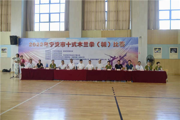 2022年7月9日夏日炎炎,宁波市十式木兰拳(械)比赛在余姚第二实验小学举行,本次比赛活动由宁波市武术协会主办,余姚市武术协会、宁波市武协木兰拳分会承办。 莅临本次比赛的有余姚市文化和广电旅游体育局党委委员、余姚市体育管理服务中心主任卢国君先生,宁波市武术协会副主席兼秘书长成建波、宁波市武术协会副主席兼党支部书记许立群,宁波市武术协会尹春龙,原宁波市木兰拳分会常务副会长暨十式木兰拳创编人张斌,宁波市木兰拳分会长顾丽琴和余姚市武术协会会长陈雪峰,副会长沈百明、沙静明,宁波保世洁环境科技有限公司总经理胡炎峰先生等领导。