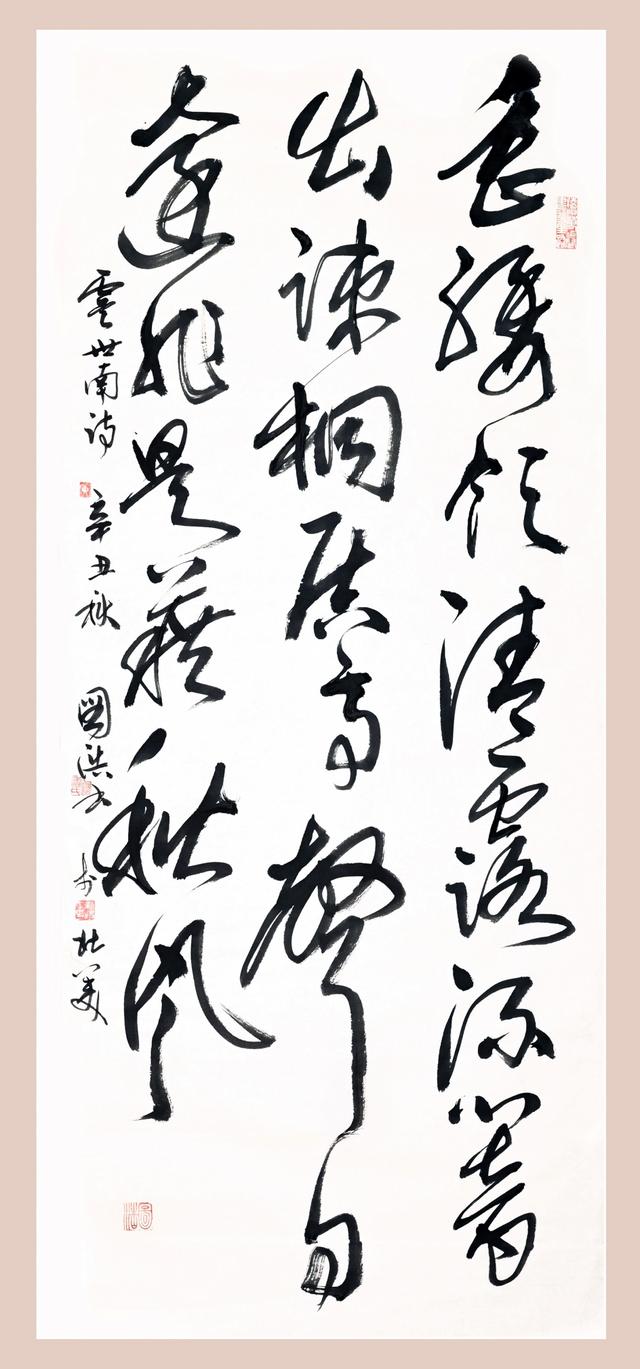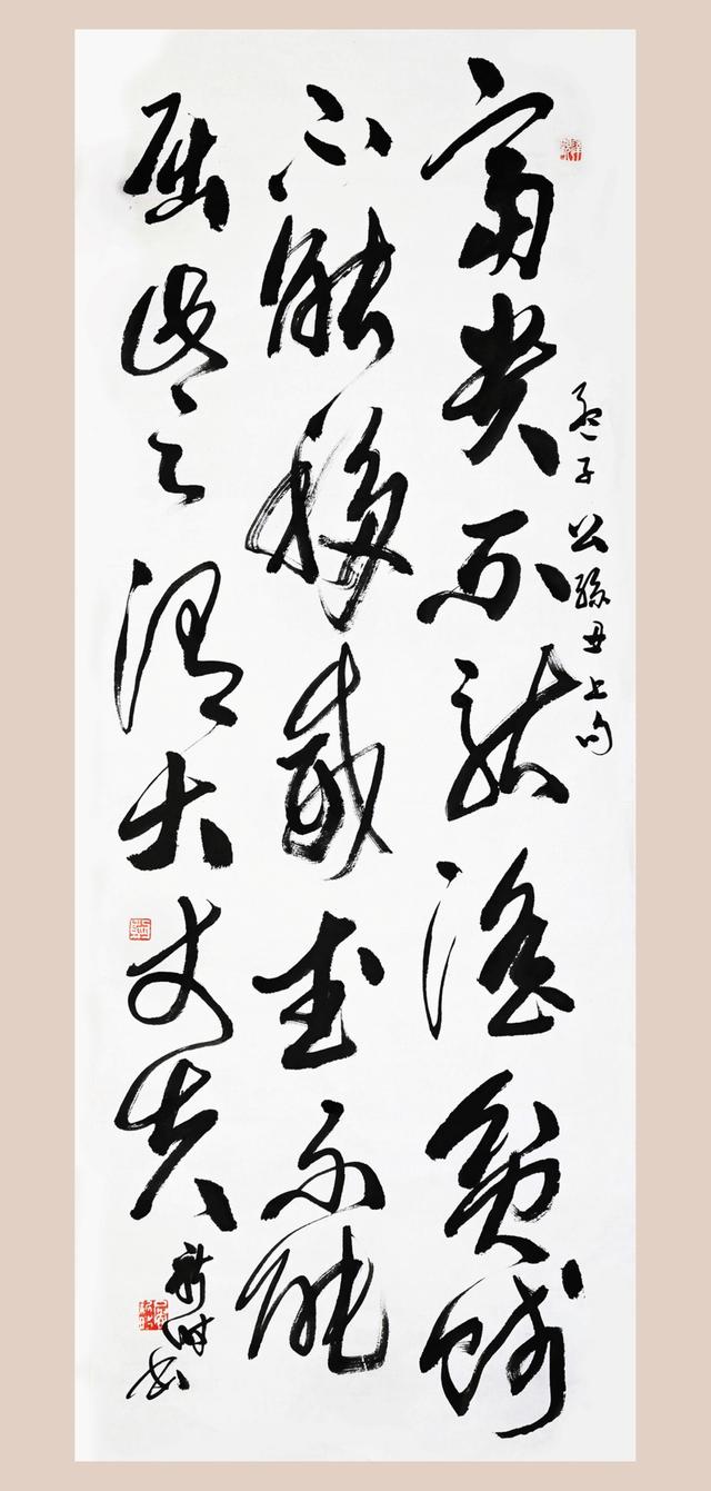 冰清雪洁 祝贺北京东奥成功 2021 同是2021年,牛年春节前后,屠新时的两件草书新作由中国国家博物馆和中国美术馆收藏,分别向他颁发了正式收藏证书。吴为山馆长在收藏评鉴文字中写道: “用笔痛快,用墨痛快,笔墨挥洒自如,极有米芾法帖蜀素帖的刷字之快疾! 可见他的书法有取法为上的价值观,亦有得法为上乘的造诣。起笔落笔,本领为先,金书绵字,一目了然”。 “古人论书法,讲究形神兼备,犹贵于神。现在看屠新时的草书作品,了然可以断定,这就是形神兼备,神尤突出之典范”。