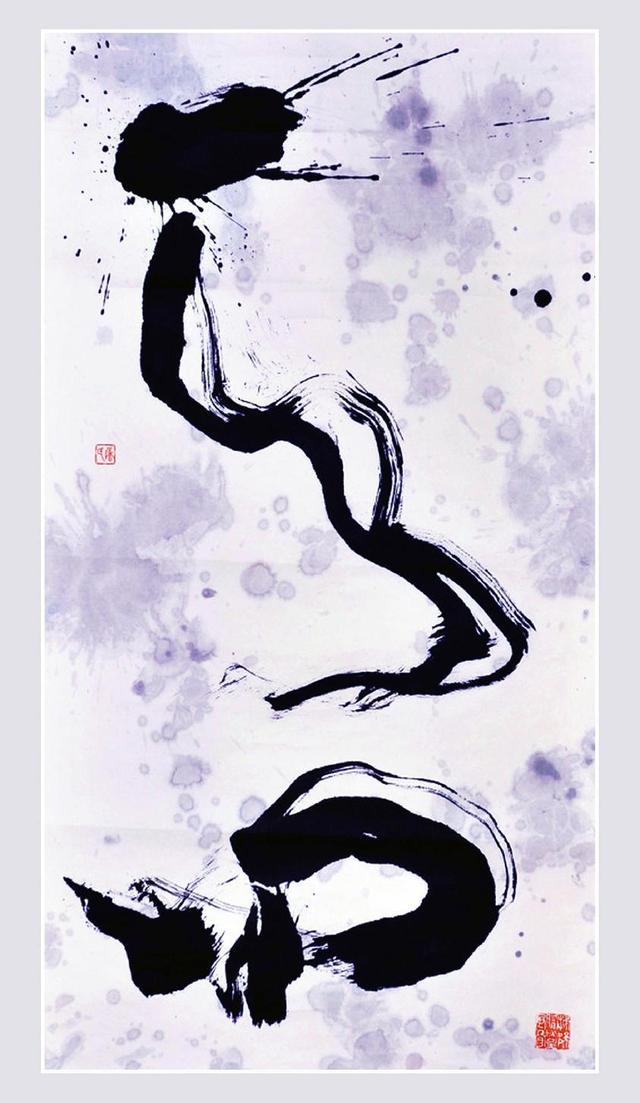 东临碣石 以观沧海 三国 曹操诗 屠先生育桃李满天下,成为广受赞誉的书道师尊,可堪是一位凝聚书法文化力量,以中西文化对话、沟通民心和文明互鉴为自己使命的海外有灵魂的领军人物。在国内,上海图书馆、中国国家博物馆、中国美术馆也分别收藏了屠新时的笔墨佳作。 书法文化成就,源于他对书法事业的精益求精。屠先生习成书法,几十年努力向碑帖汲取营养。他先后临习过王羲之、王献之、颜真卿、褚遂良、孙过庭、张旭、苏东坡、黄庭坚、米芾、赵孟、傅山、王铎等的碑帖,也在北魏龙门二十品诸碑中下过功夫。篆书取法泰山刻石,写得刚柔相济,正大气象。楷作颜筋褚研,又参意了魏碑的雄强朴茂,楷正法详,笔法精到。隶书师曹全碑、华山庙碑,典雅方俊,一波三折,丰姿多神。又水镜明辨,博阅书论,成为既有扎实深厚书法技法功底,兼备精研悟思的理论修养。他的几部书著《书法与中国大智慧》、《墨韵易经》、《生命流美》等都将书法创作和人文哲思文章组合一体,既有人文创意,也富于艺术具象与抽象的美感,又在书作文字的“意”与“象”的笔墨契合中引人思考,激发想象和灵感。