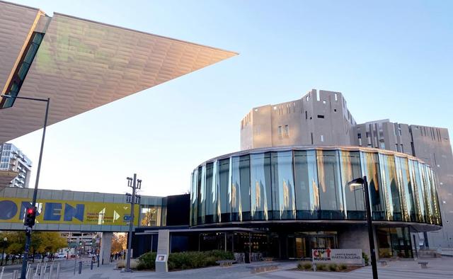 丹佛艺术博物馆南楼,左侧澄红色艺术构建作者题名为《老子》 “居高声自远,非是藉秋风”。屠新时就是站在中西方文化交汇最前沿的一位中华文化传播者和艺术创作者,20年自信坚守,具有雄健的开拓力和创造力。“让世界了解中国, 让中华文化走向世界”这是他内心的使命。他的书法导师是沈尹默先生的入室弟子著名书法家书学家胡问遂先生,几十年中临池、创作、研习从未中断。