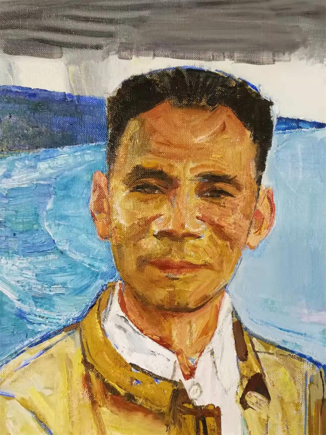 《谷文昌》局部 布面油画 200x100cm 2019年