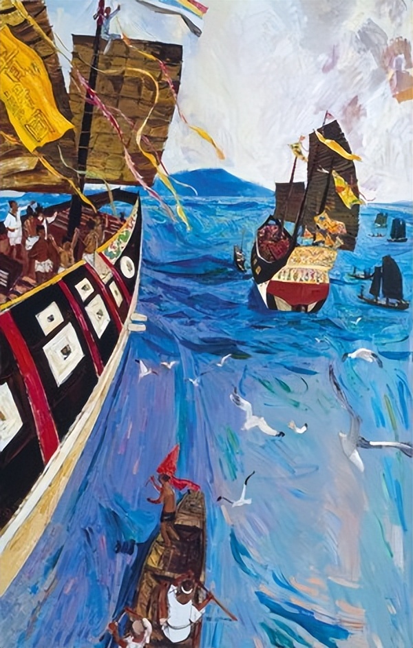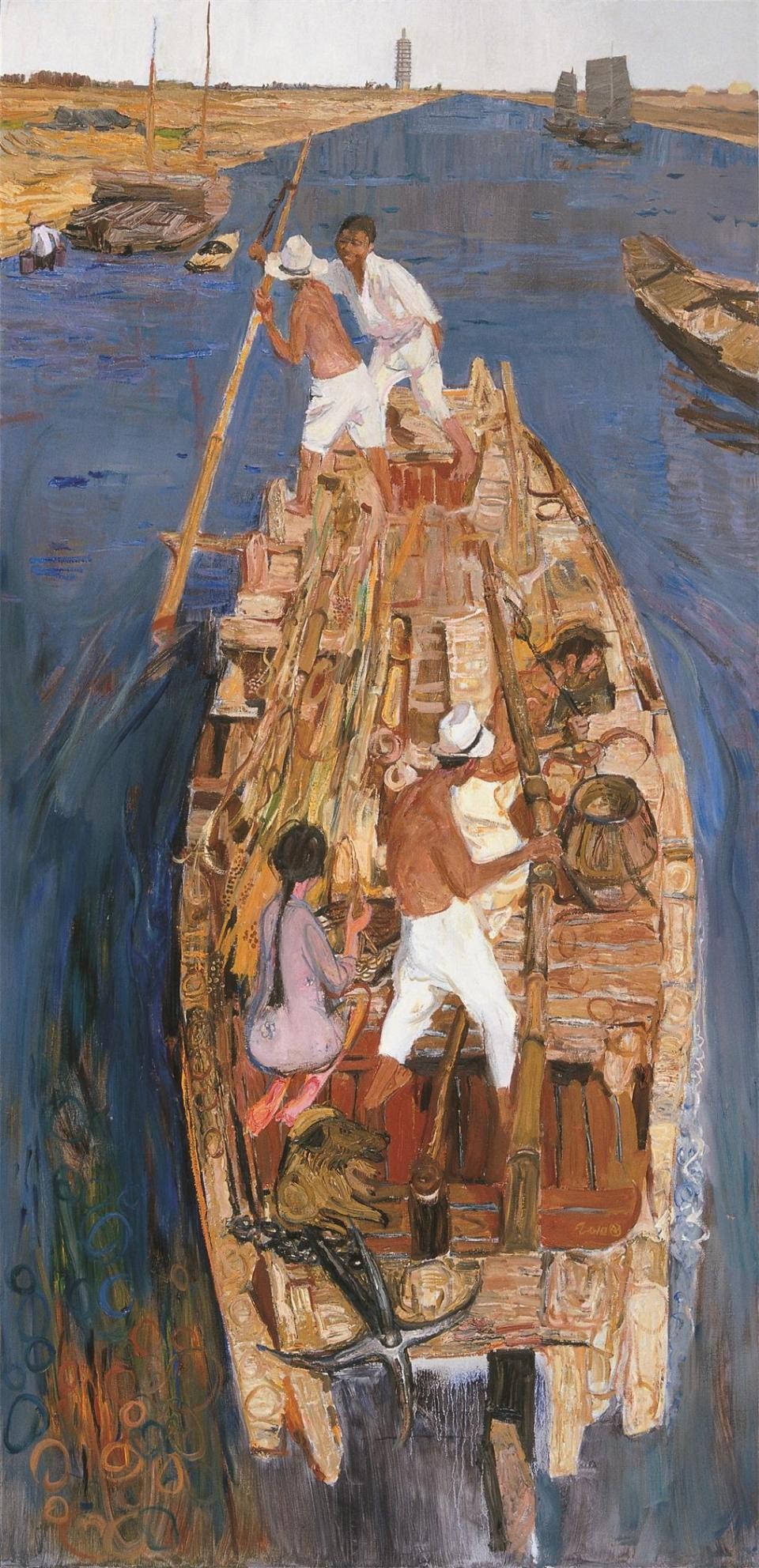 《贡船满载回归那霸国》布面油画 190x100cm 2014年