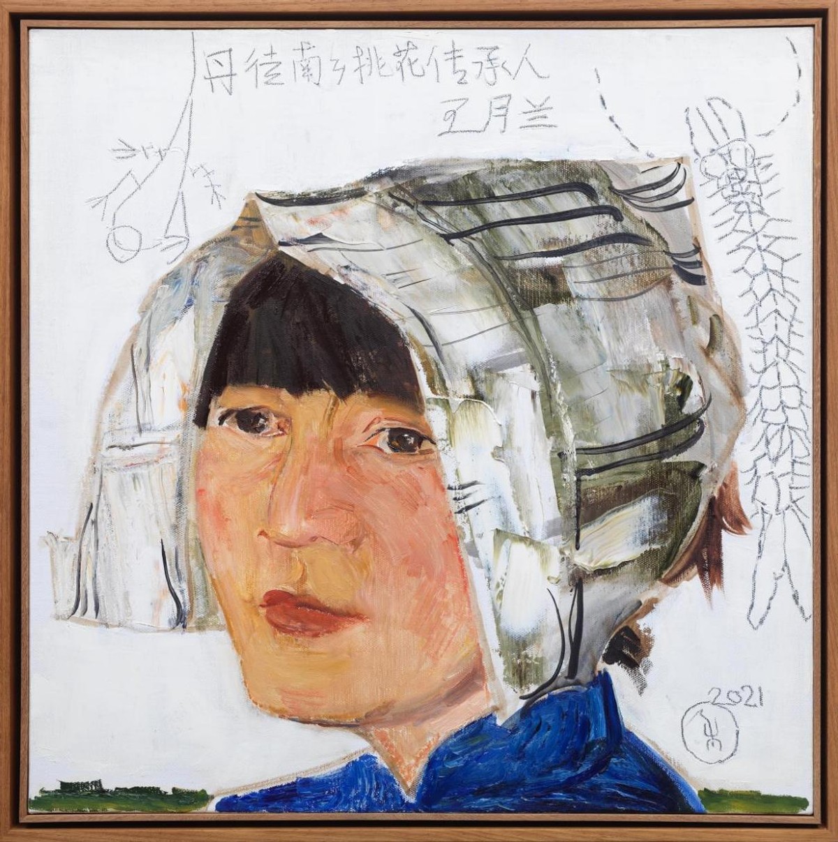 《挑花传承人王月兰》布面油画 60x60cm 2021年