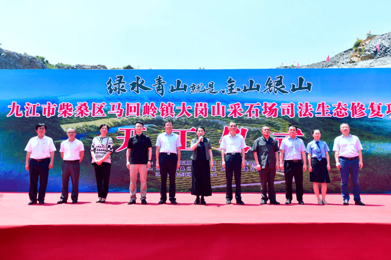 ——柴桑区非法采矿破坏生态修复执行案修复工程今日开工 2022年7月13日,九江市柴桑区人民法院审结的柴桑区人民检察院诉李某林非法采矿生态修复执行案,在被告人废弃的马回岭镇大岗山采石场举行生态环境司法修复执行开工仪式。该修复执行工程,待修复面积5.82公顷,计划于2022年底完成施工,项目所需修复资金主要来源于非法采矿案件被告人缴纳的生态修复赔偿金。工程采取分区治理模式开展治理,建设内容包含构筑物及设备拆除工程、边坡及平台修复治理工程、采场底盘整平工程、覆土复绿工程等,对山体生态环境整体修复。