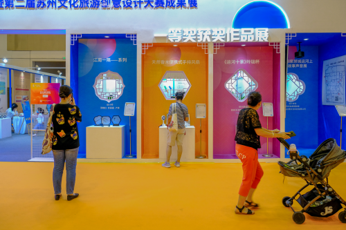 本届苏州文博会持续破圈,进一步凸显了“跨界融合”办展特色。展会积极探索“文化+”创新产业深度融合模式,打造了线下主会场“数字赋能·创意之都”序厅及“文化+科技”“文化+设计”“文化+旅游”3类展区共22个主题展馆,展现了数字技术和技术延伸的新业态、新场景、新产品,汇集了数千件极具创意的家居、日用等方面的设计精品,集中呈现了具有江南文化内涵的文旅体验新业态、新模式,推动文化创意和设计服务与数字产业、文化旅游、智能制造等相关行业、产业紧密对接、深度融合。展会还着力展示了“一个总平台、三大着力点、七个数据库”的苏州文旅“137”数字建设体系,展现了数字赋能苏州文旅事业、产业发展成果。