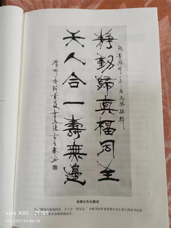 (通讯员 杨金高 姜新星报道) 7月18日, 东乡区退休干部、原中医院院长、中医师邓一齐在家中举办亲友小型聚会,庆祝他大半辈子的心血结晶《嵇康【养生论】诠释及拾遗》由中国医药出版社出版发行。中国中医药出版社编审单宝枝博士为该书作序。原东乡县人民政府副县长、江西省书协会员、太极书法探索者张黄生为之题写楹联:静动归真福同至,天人合一寿无边。