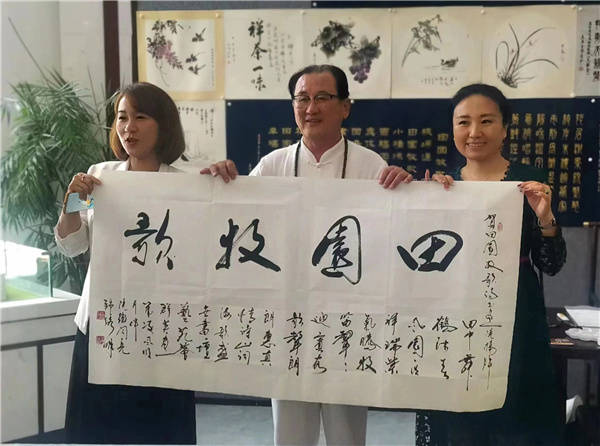 “菱透浮萍绿锦池,夏莺千啭弄蔷薇”。在小挢流水、绿树成荫,在亦景亦画、环境优雅的田园牧歌,迎来的新的节日,7月17号,河北唐山田园牧歌小区“翰墨飘香颂党恩”暨诗书画院揭牌仪式在唐山高新技术产业开发区田园牧歌康养基地举行。揭牌仪式由市场部经理李安主持,田园牧歌运营总监项阳梅女士致欢迎词,她介绍了田园牧歌的人文环境、小区文化建设展望,对企业家和书画艺术家们的到来表示热烈的欢迎。丰润区沙流河镇党委书记刘开地、唐山馨民养老产业有限公司王鹏飞出席揭牌仪式。揭牌仪式让有着丰富的人文资源和文化底蕴,集康养、休闲为一体的田园牧歌更增添几分人文的艺术气息。