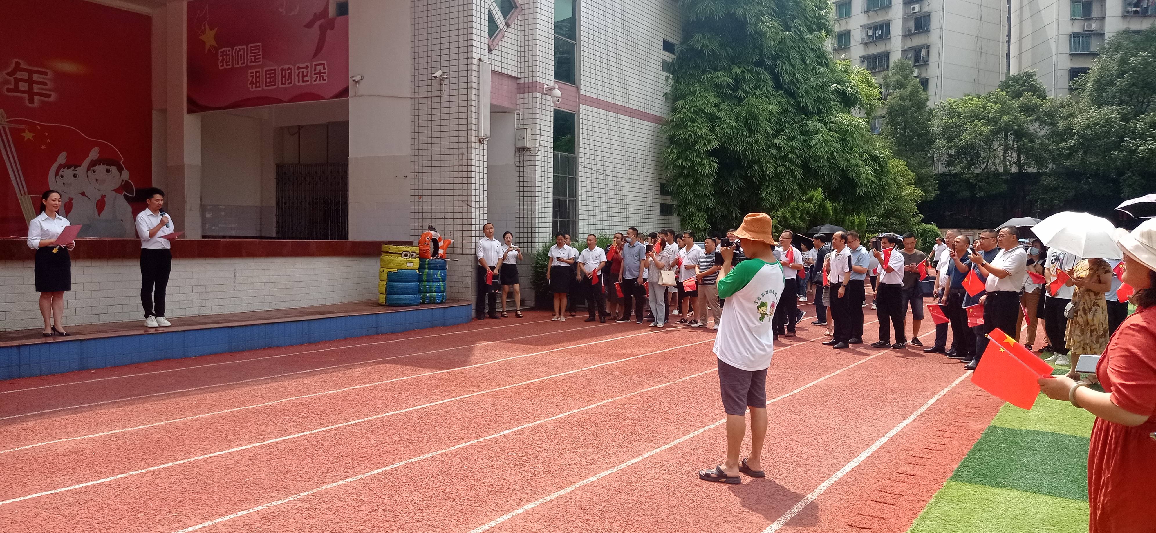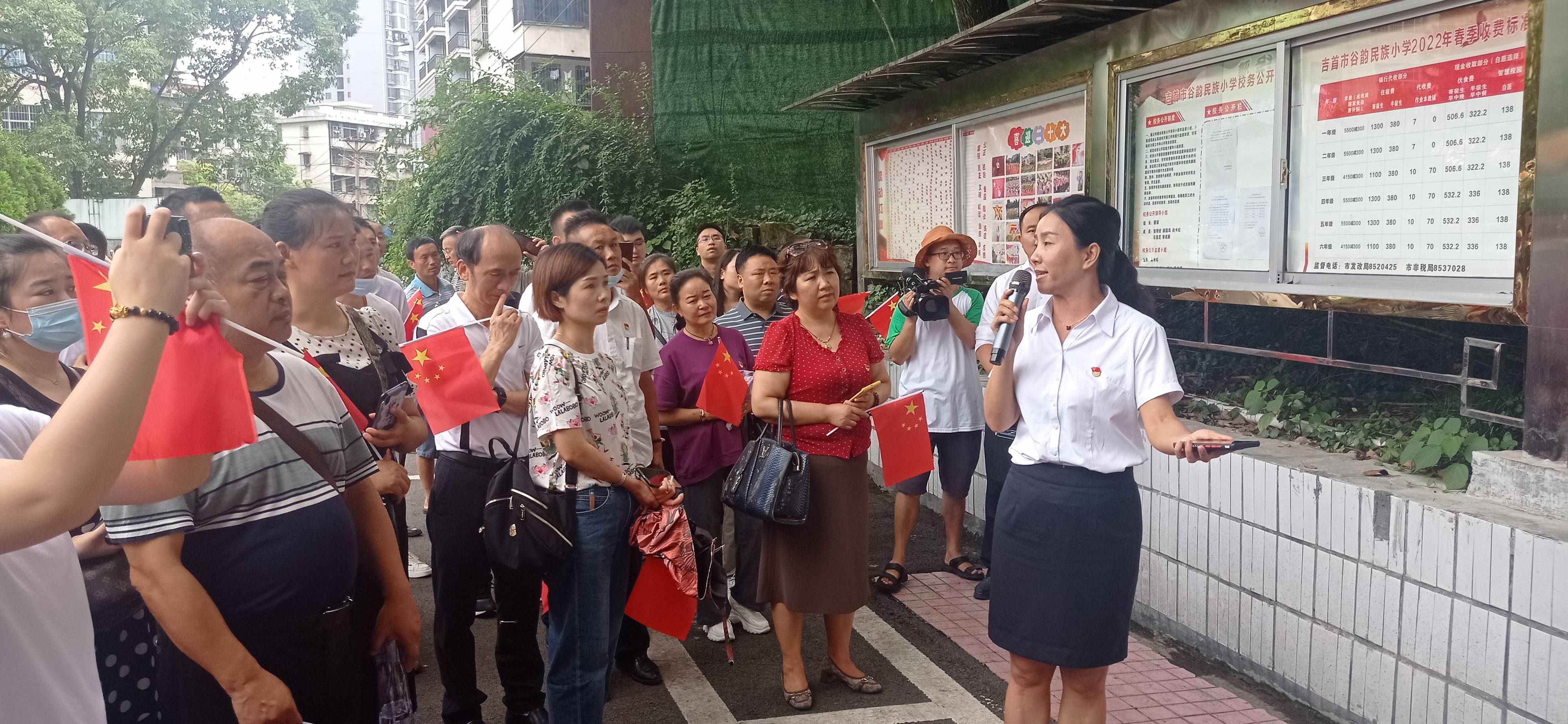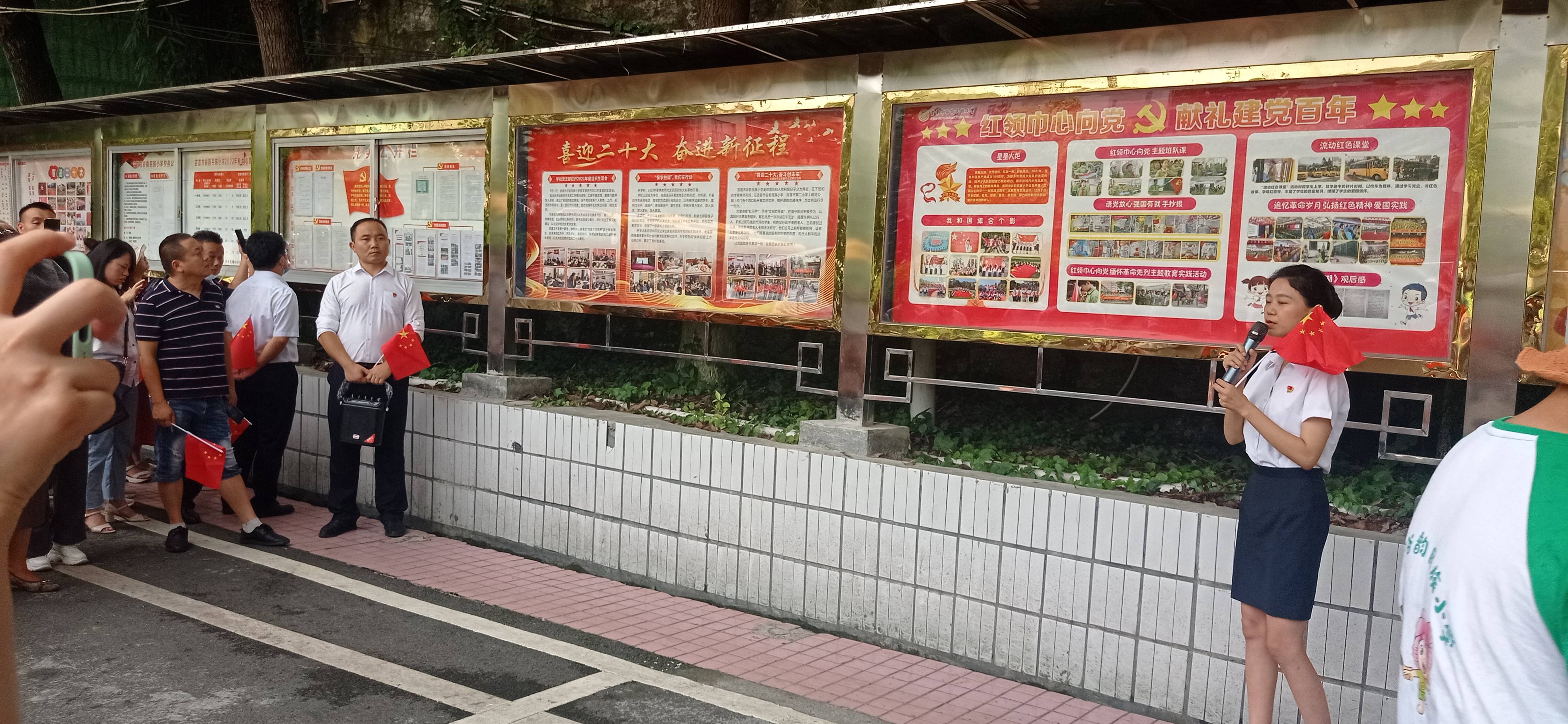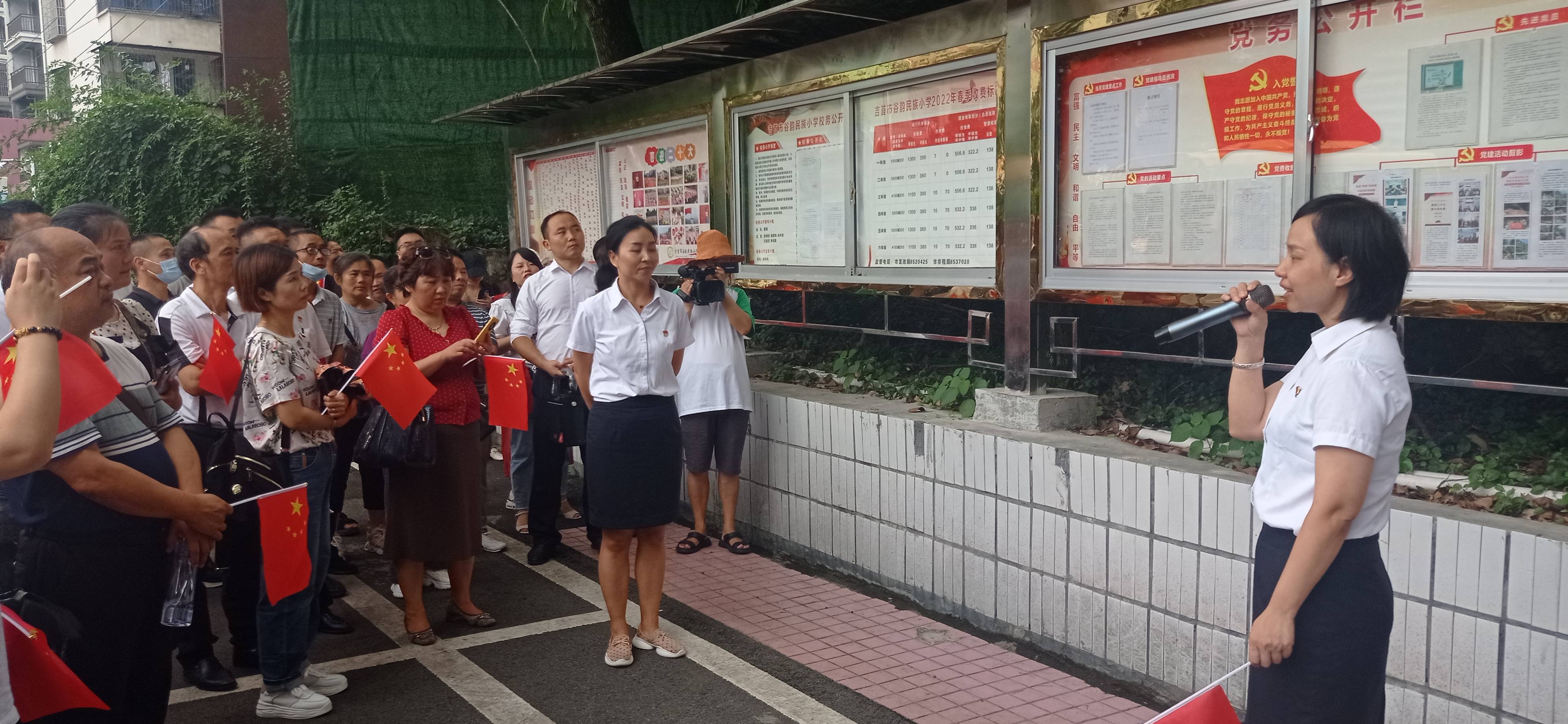 在绿树掩映的学校党建文化长廊面前,学校党支部书记、校长唐丽向学员们介绍了学校党建对学校全面工作的引领作用,接着学校副书记、副校长颜国珠向学员介绍了学校近期所开展的党建活动,支委成员、少先队总辅导员颜熙向学员介绍了党建引领学校少先队的建设情况。