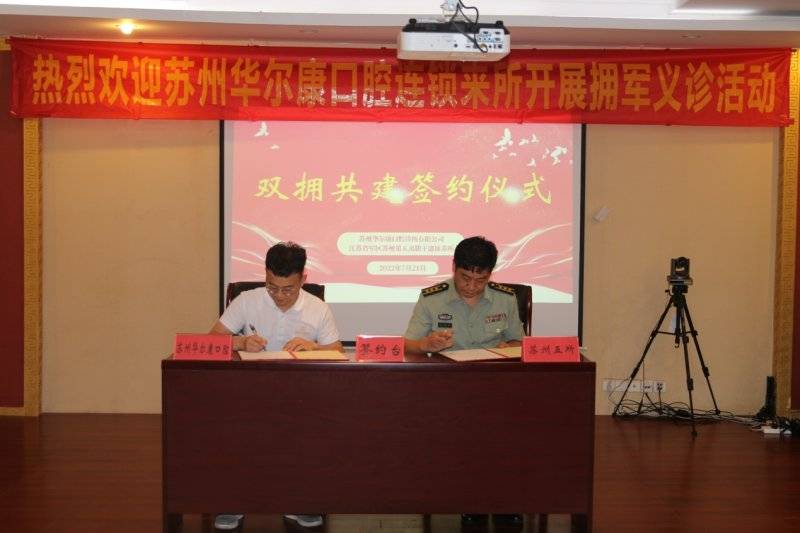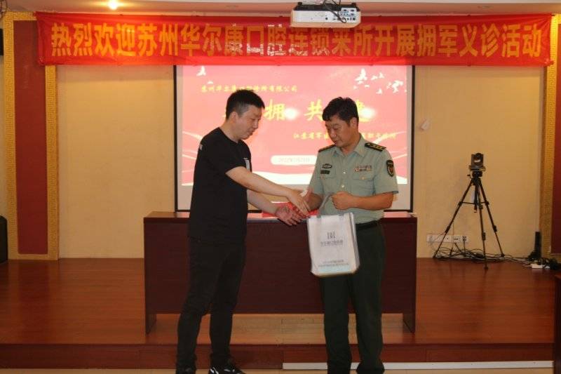 ▲双方签订双拥共建协议 活动现场,华尔康口腔医院还给老干部、老阿姨送上了慰问品及口腔护理优惠卡、现金抵用券,并表示今后还将长期以拥军敬老的情感和绝对优惠的价格为老干部、老阿姨及家属服务。 苏州市全民国防教育协会会长肖汉涛向全体老干部、老阿姨致以八一建军节的问候,他动情地说:“军队老干部为新中国的建立和建设发展作出了重要贡献,全社会都应该关心他们,力所能及地为他们做好事办实事。今后,苏州市全民国防教育协会将一如既往地组织协调更多爱国拥军企业,为国防事业贡献一份力量。”