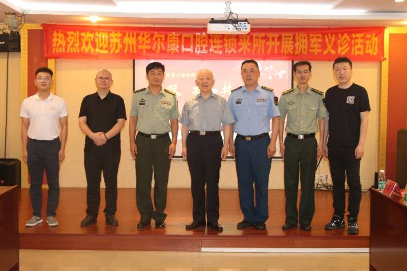 ▲苏州华尔康口腔医院现场为老干部、老阿姨提供免费义诊活动 苏州华尔康口腔医院是苏州全民国防教育协会理事单位,一直想为部队离休干部做点实事,以表达对老功臣、老革命的崇敬之情。在苏州市全民国防教育协会会长肖汉涛的牵线协调下,医院与驻军单位---江苏省军区苏州第五干休所结成双拥共建对子。在今天的共建签约仪式结束后,医院口腔专家为干休所工休人员上了一堂精彩的口腔健康护理讲座,现场回答了老干部、老阿姨提出的口腔疾病难题,并现场开展义诊服务,免费为有治疗需求的工休人员初步建立了健康档案,制定了初步治疗方案。