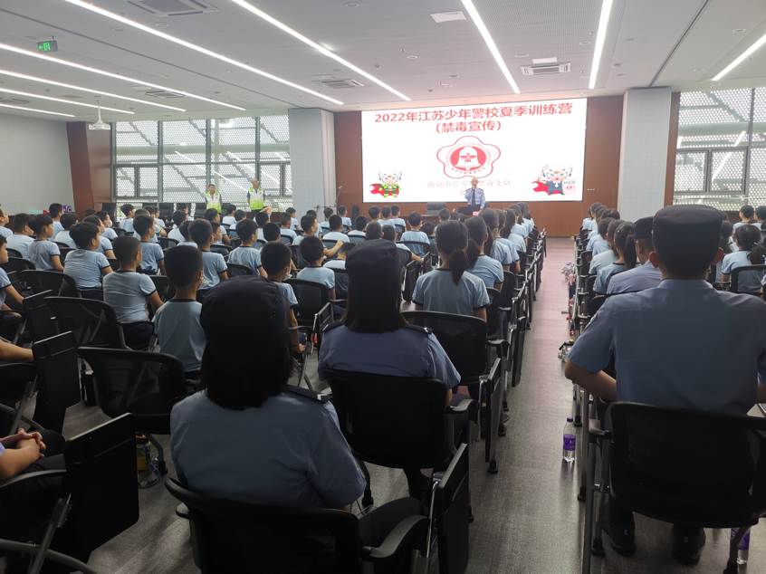 主题为“喜迎二十大,永远跟党走,奋进新征程”的中国少年先锋队江苏少年警校大队2022夏训营三营正在进行中,7月24日下午,南京市公安局禁毒支队、四级高级警长陈林警官受邀前往活动现场,为参加夏训营的孩子们宣传禁毒知识,江北新区禁毒大队民警、资深媒体人陈凤玲等到场支持。