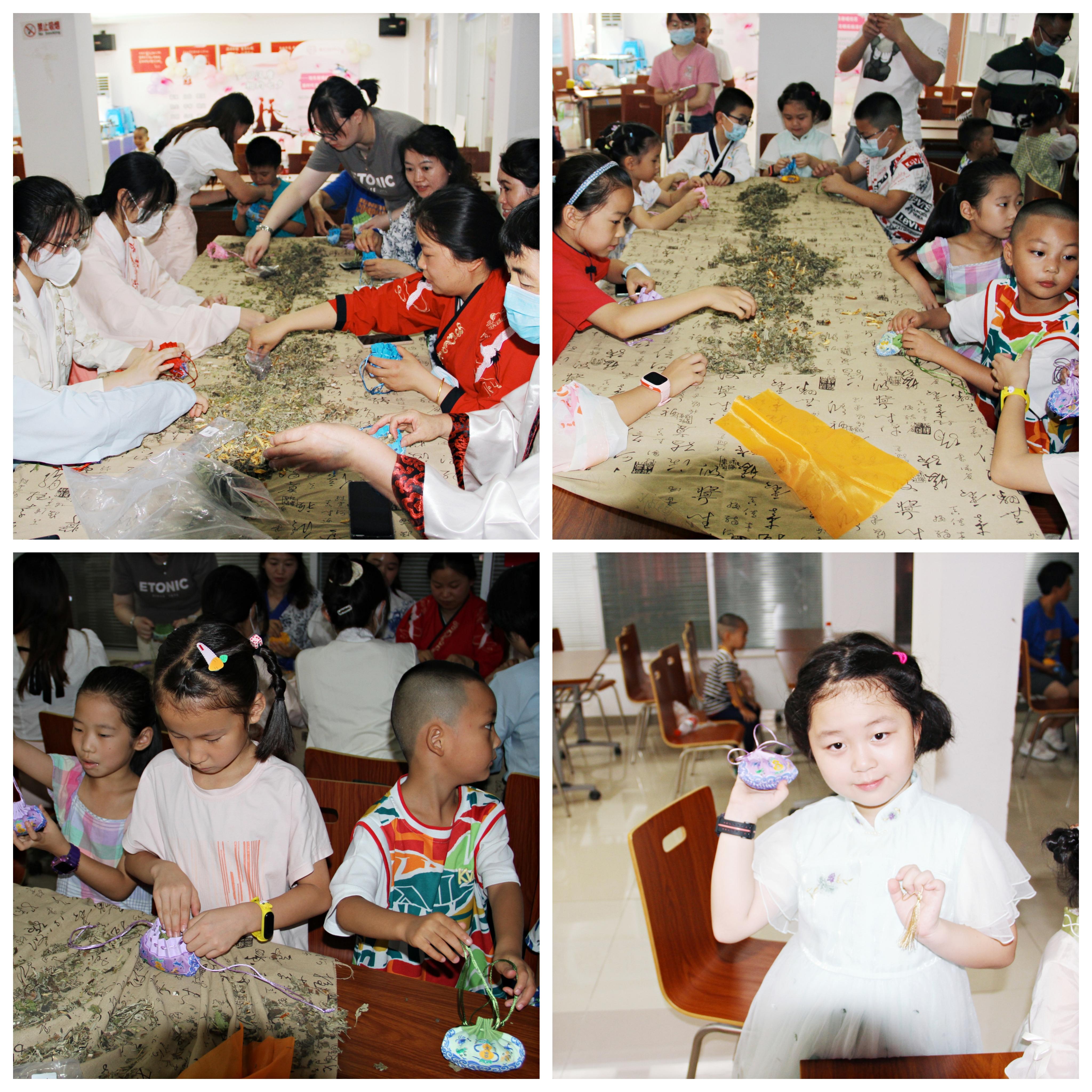 中药材制作的香囊具有驱蚊,祈福避祸的功效。在手工制作区,志愿者首先为大家简单讲解了七夕节的由来、习俗,让大家在活动中了解到“七夕”这一传统节日的相关知识。在了解七夕的渊源后,志愿者们为大家分发了做香包的材料。虽然是第一次做香包,但是大家都很热情好学,在志愿者的耐心指导下,大家很快完成了。孩子们拿着自己的“精美作品”炫耀的说到:“这里面有12味中药材味道很好闻,又好看,关键还能驱蚊哦!”孩子们简直爱不释手。